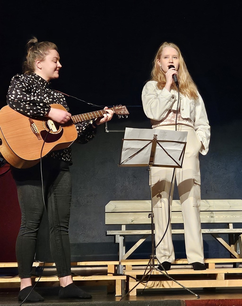 í 10. bekk, söng fyrir afmælisgesti og Hafdís Gígja Björnsdóttir kennari spilaði á gítar.