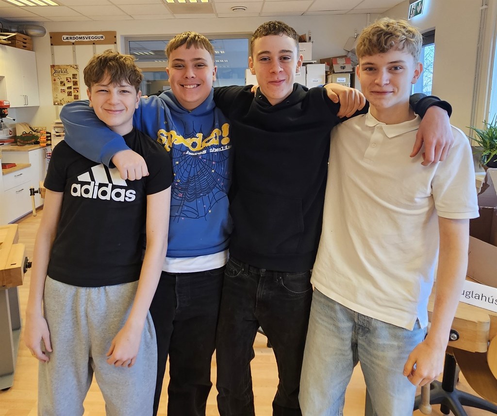 Frá vinstri, Ísak Nökkvi Bergþórsson nemandi í 8. bekk frá Lækjarbakka, Gunnar Elí Friðriksson Whalen nemandi í 10. bekk, sem býr Selfossi, Guðni Bóas Davíðsson nemandi í 9. bekk frá Ármótsflöt og Jón Oliver Rúnarsson nemandi í 9. bekk frá Súluholti.