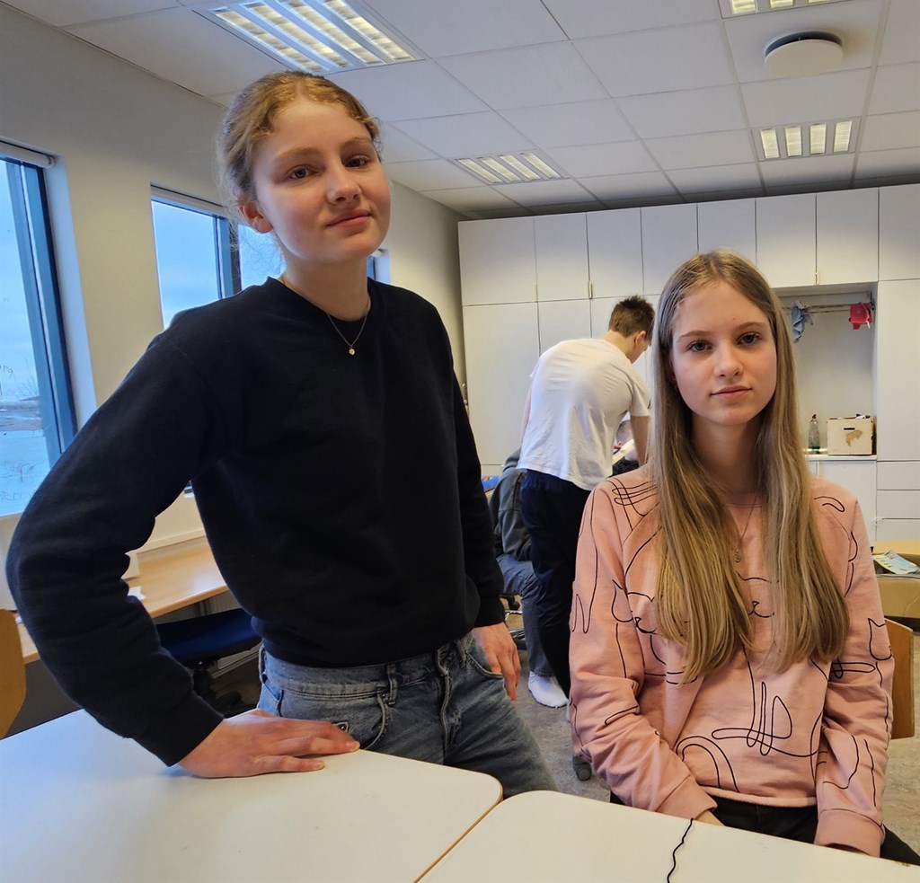 Hér eru vinkonurnar Margrét Lóa Stefánsdóttir í 10. bekk frá Gerðum (t.v.) og Katrín Lísa Guðmundsdóttir Johnsen, sem er 8. bekk og býr á Selfossi.