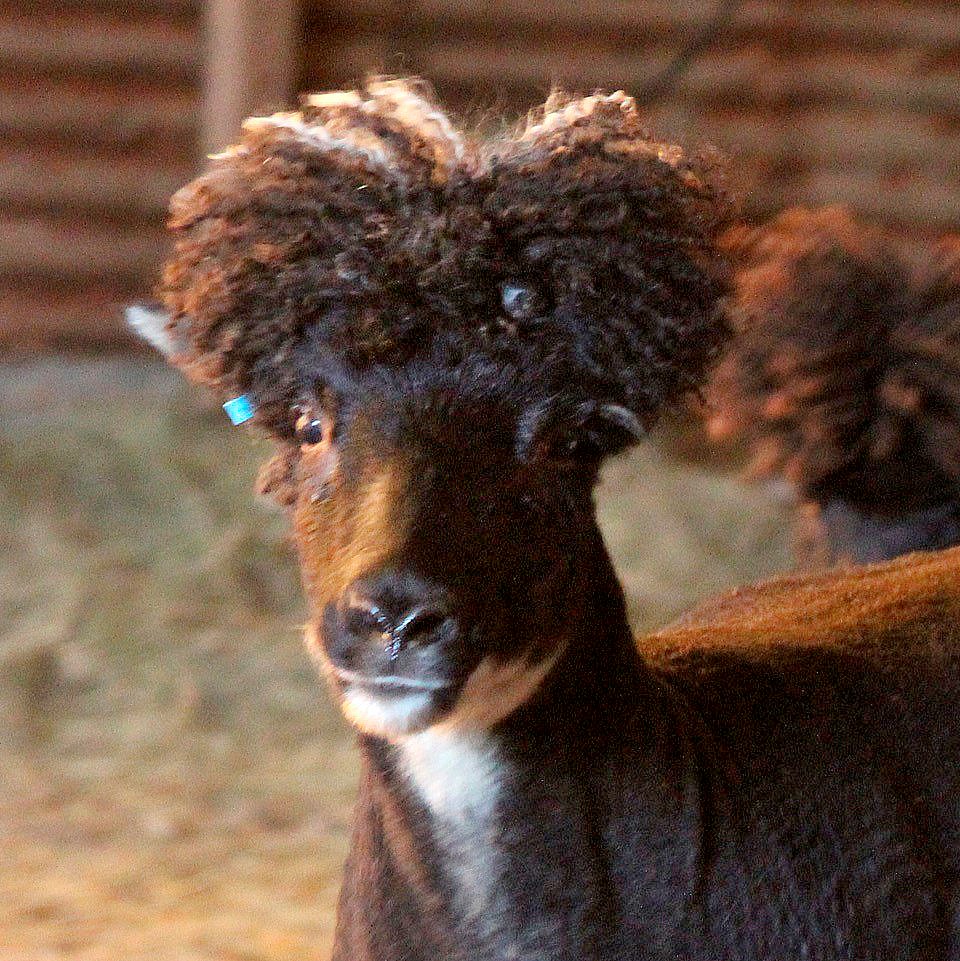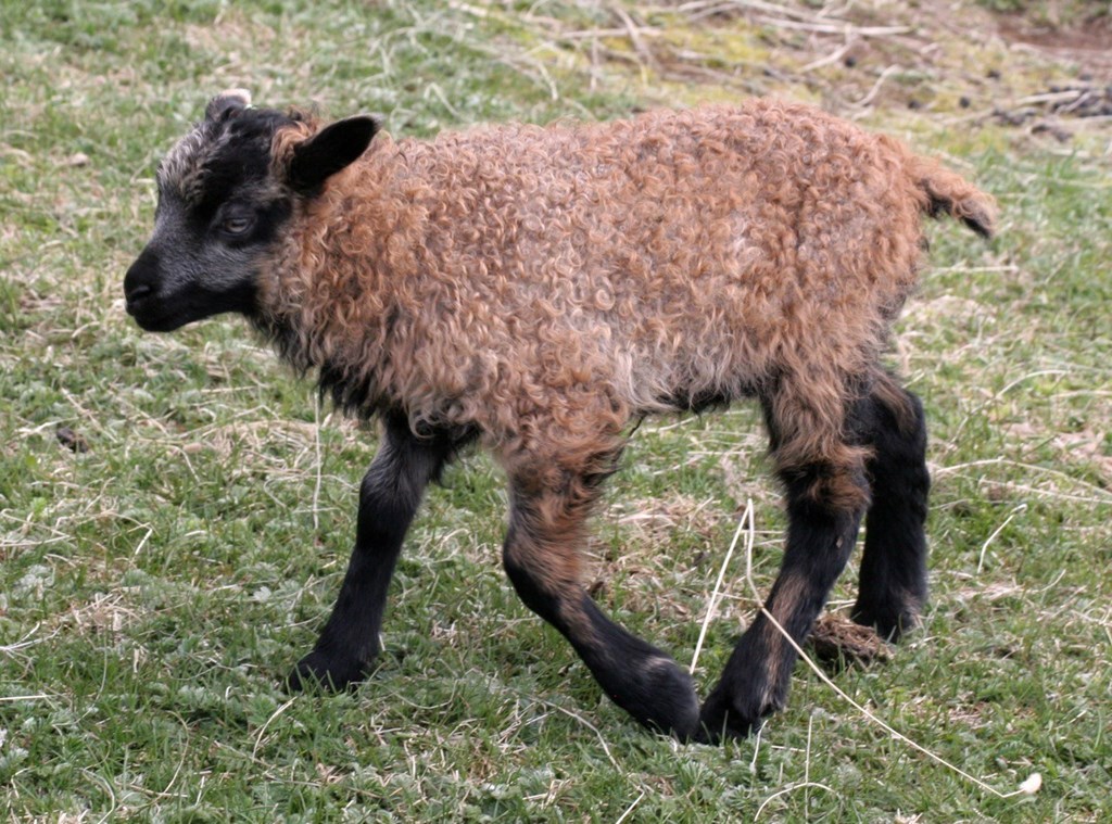 Svartgolsótt lamb sem er óvenjulega dökk írautt (gult) um skrokkinn.