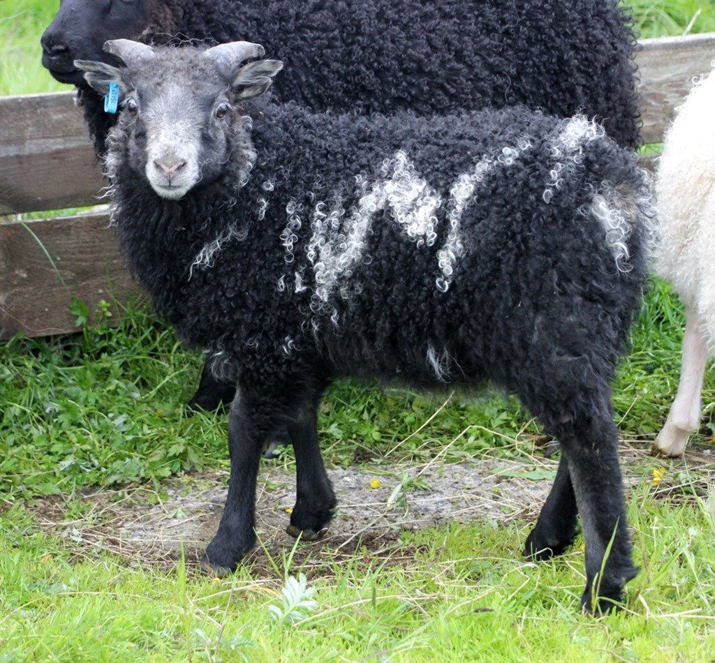 Svartgolsótt feruhníflótt ung ær með myndarlegan brúsk.