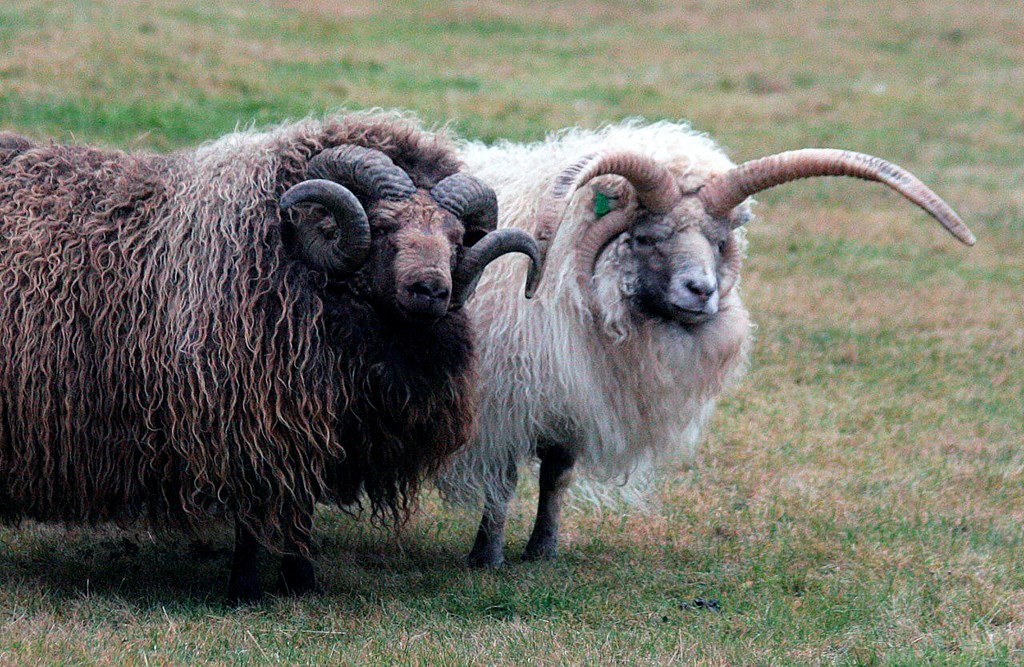 Tveir mikilúðlegir félagar, mórauður tvíhyrndur og kolóttur ferhyrndur.