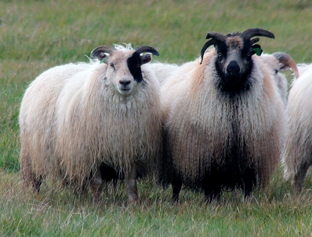 Írauð- (gul-) og svarthálsóttir tvílembingar. Írauði liturinn á lömbum hverfur oftast nær af skrokknum er þau fullorðnast en heldur sér frekar á haus.