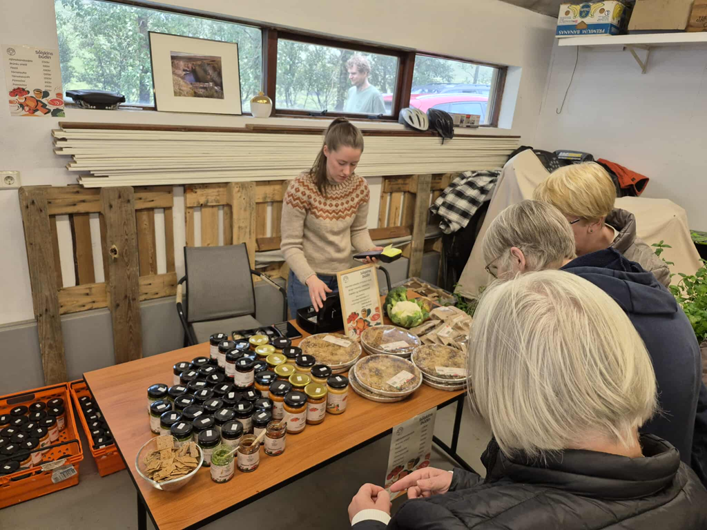 Sólskinsbúðin kynnir vörur sínar á markaðinum hjá Korngrís í Laxárdal.