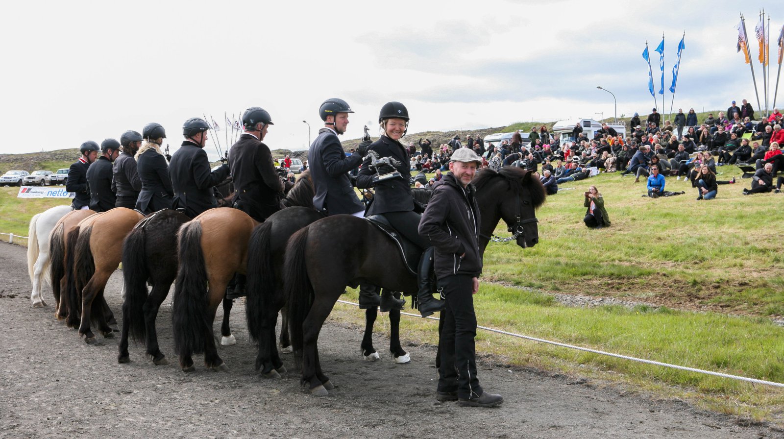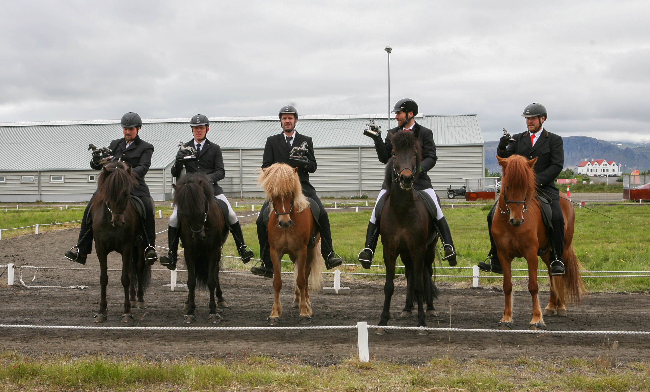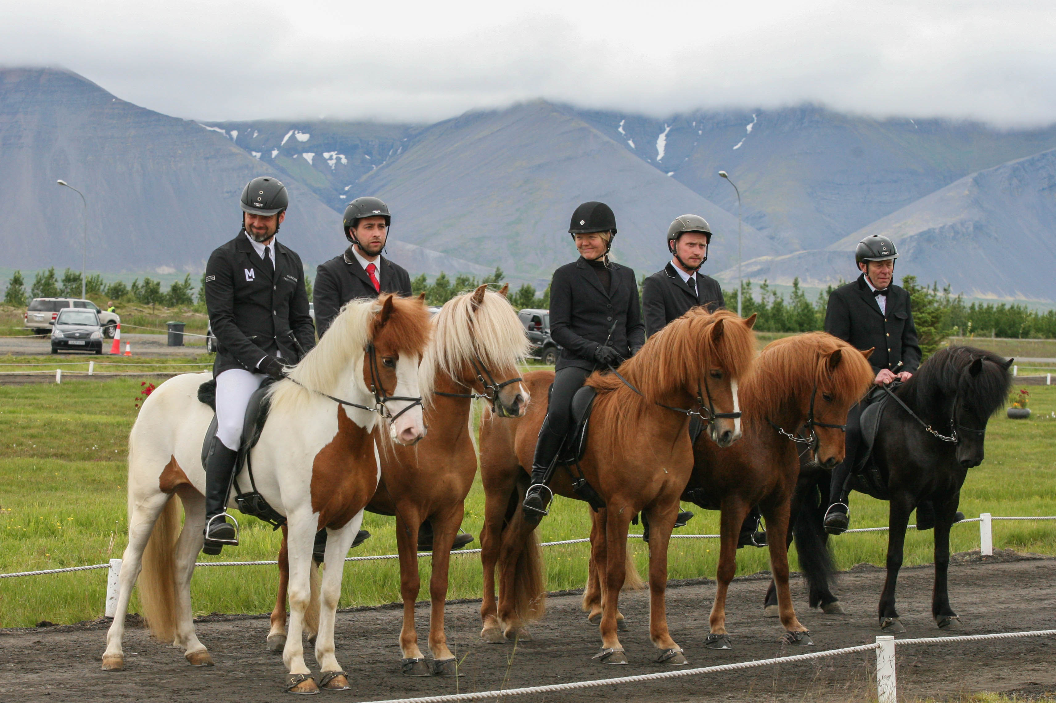 Efstu 5 vetra hryssurnar. Frá vinstri Ísey frá Lækjamóti, kn. Ísólfur Líndal Þórisson, Lukkudís frá Bergi, kn. Viðar Ingólfsson, Elding frá Þúfum, kn. Mette Mannseth, Fjóla frá Eskiholti II, kn. Hlynur Guðmundsson og Úa frá Efri-Hrepp, kn. Ámundi Sigurðsson.