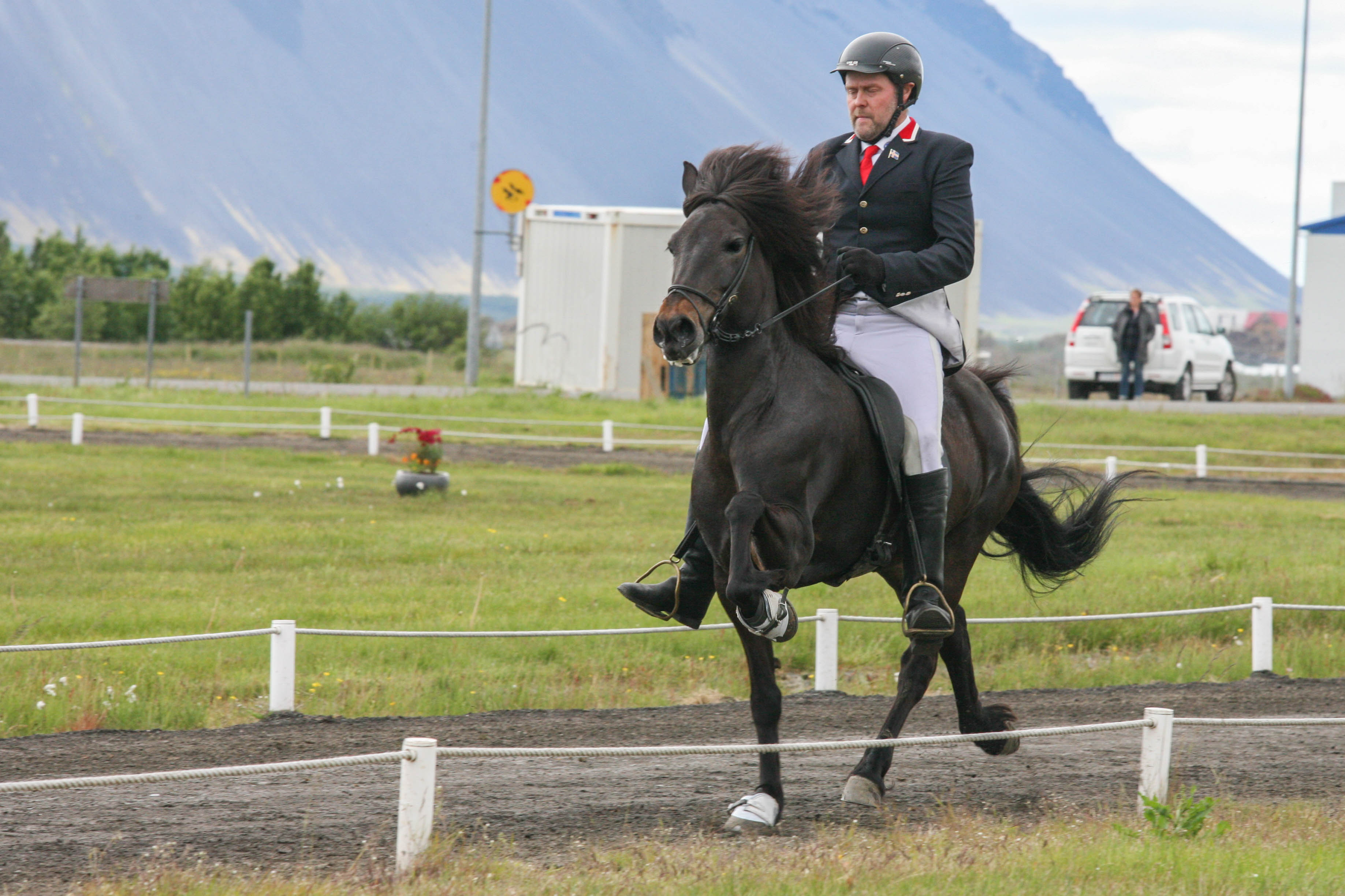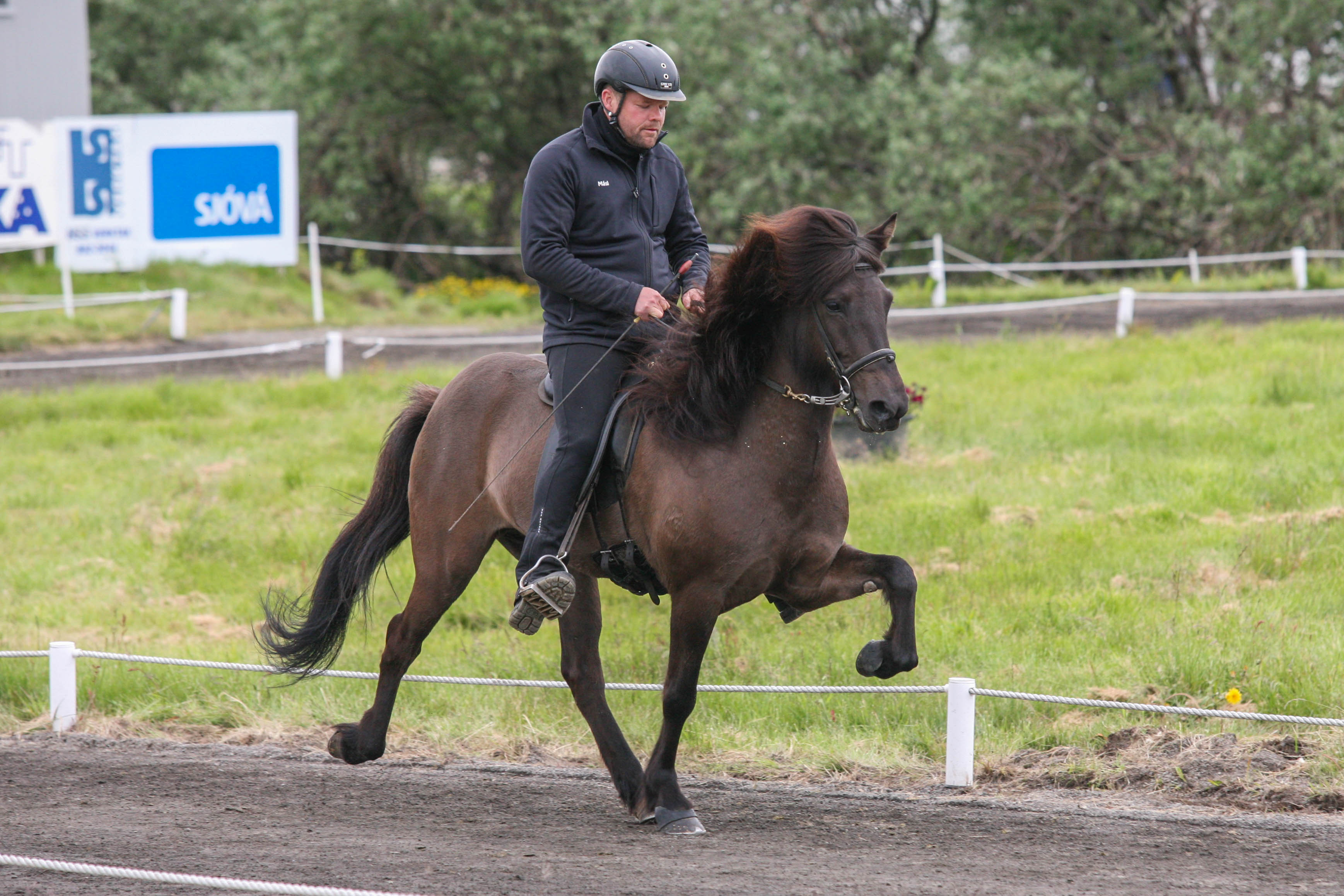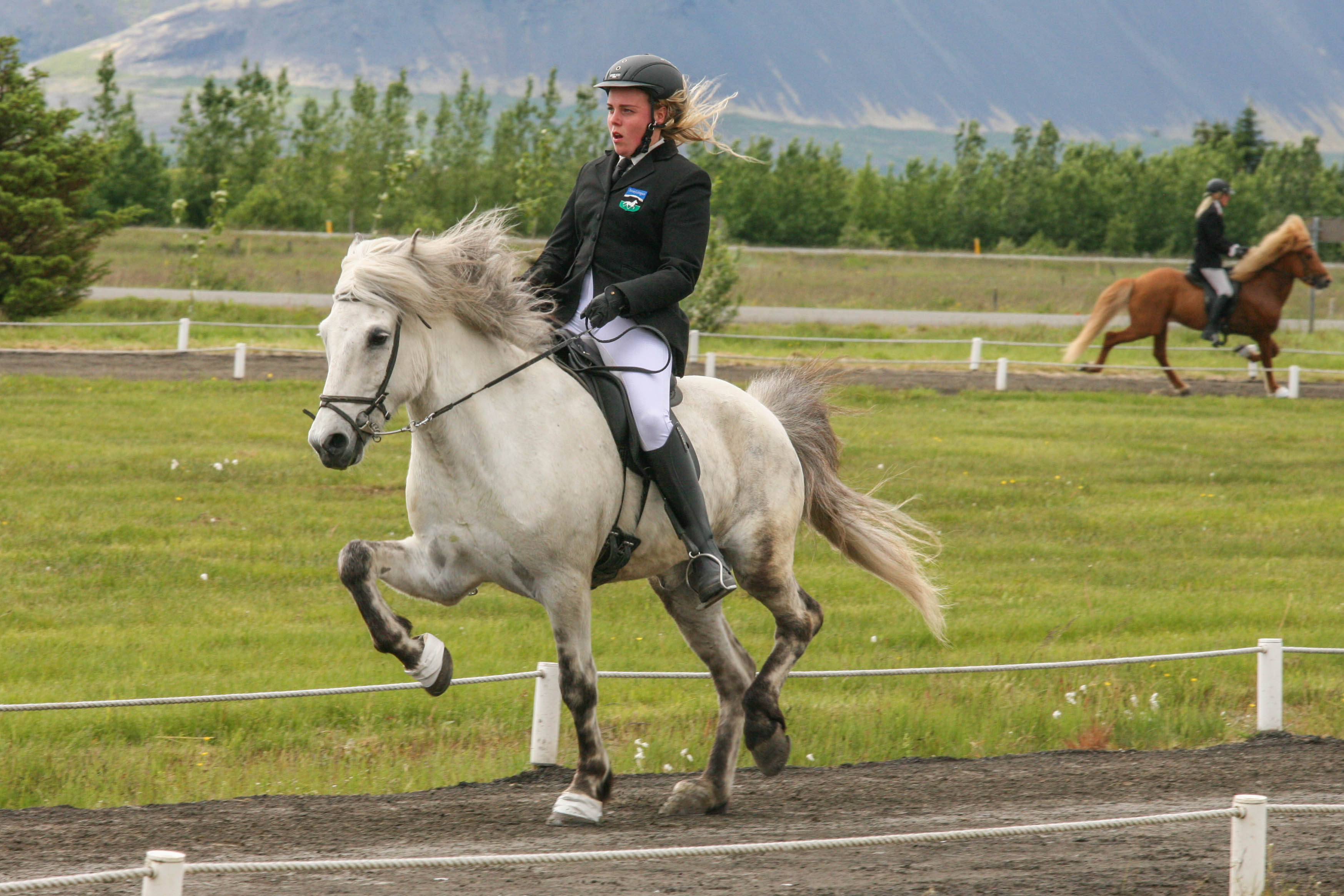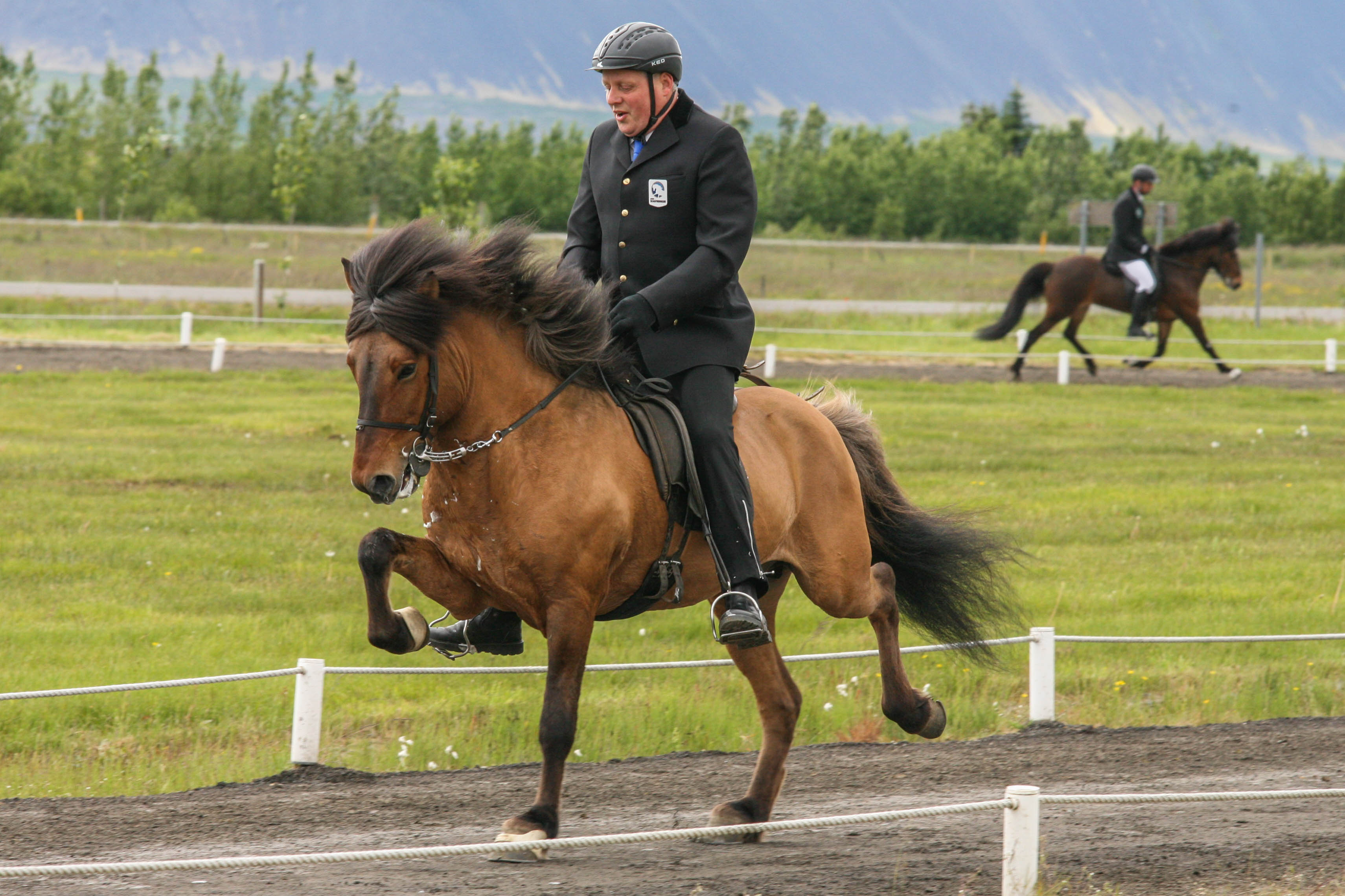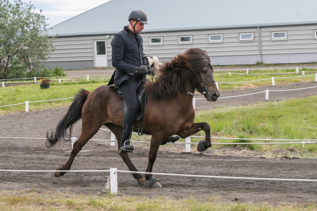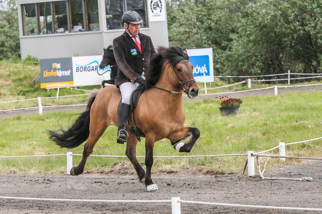 Kalsi frá Þúfum setinn af Mette Mannseth ásamt Gísla Gíslasyni.