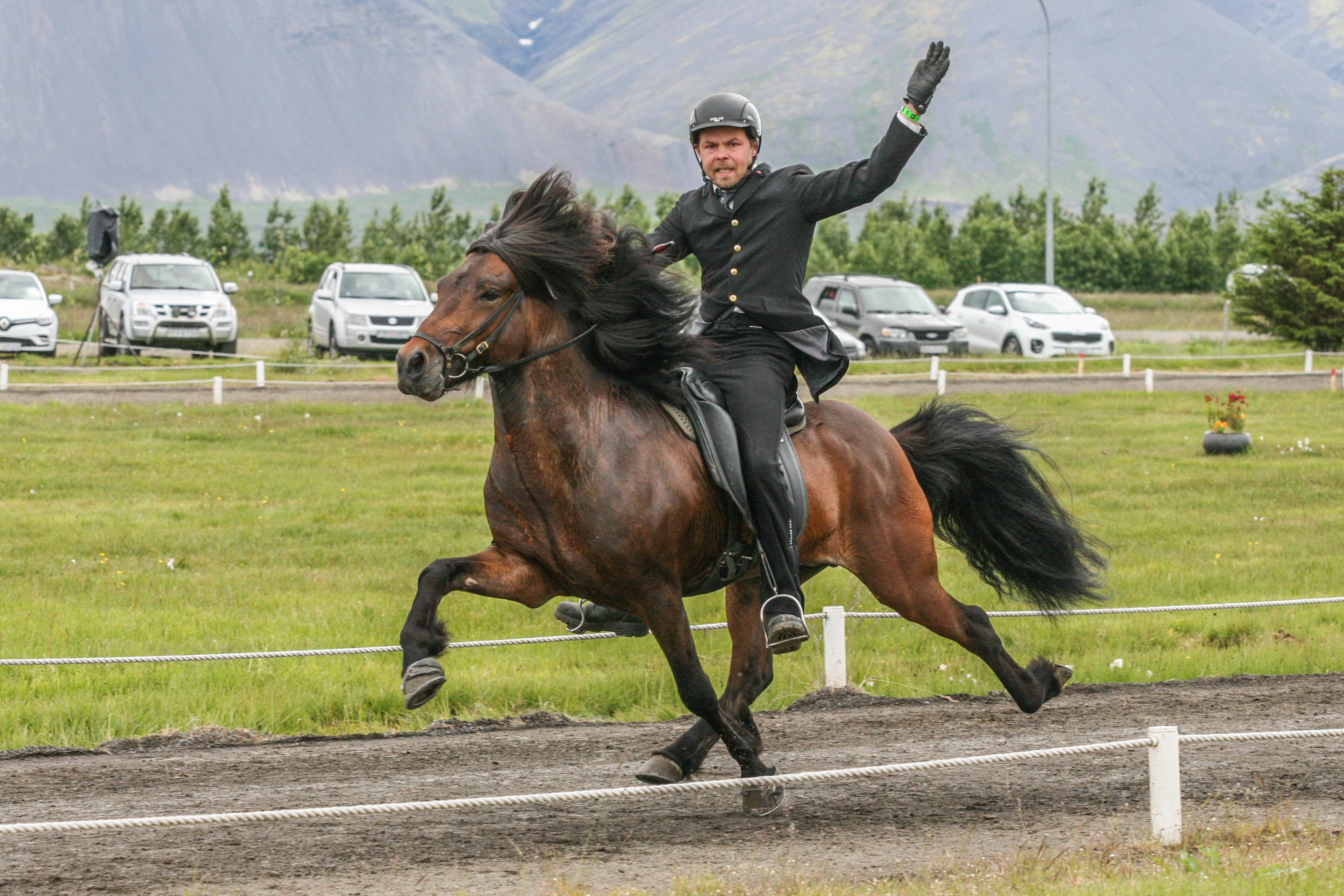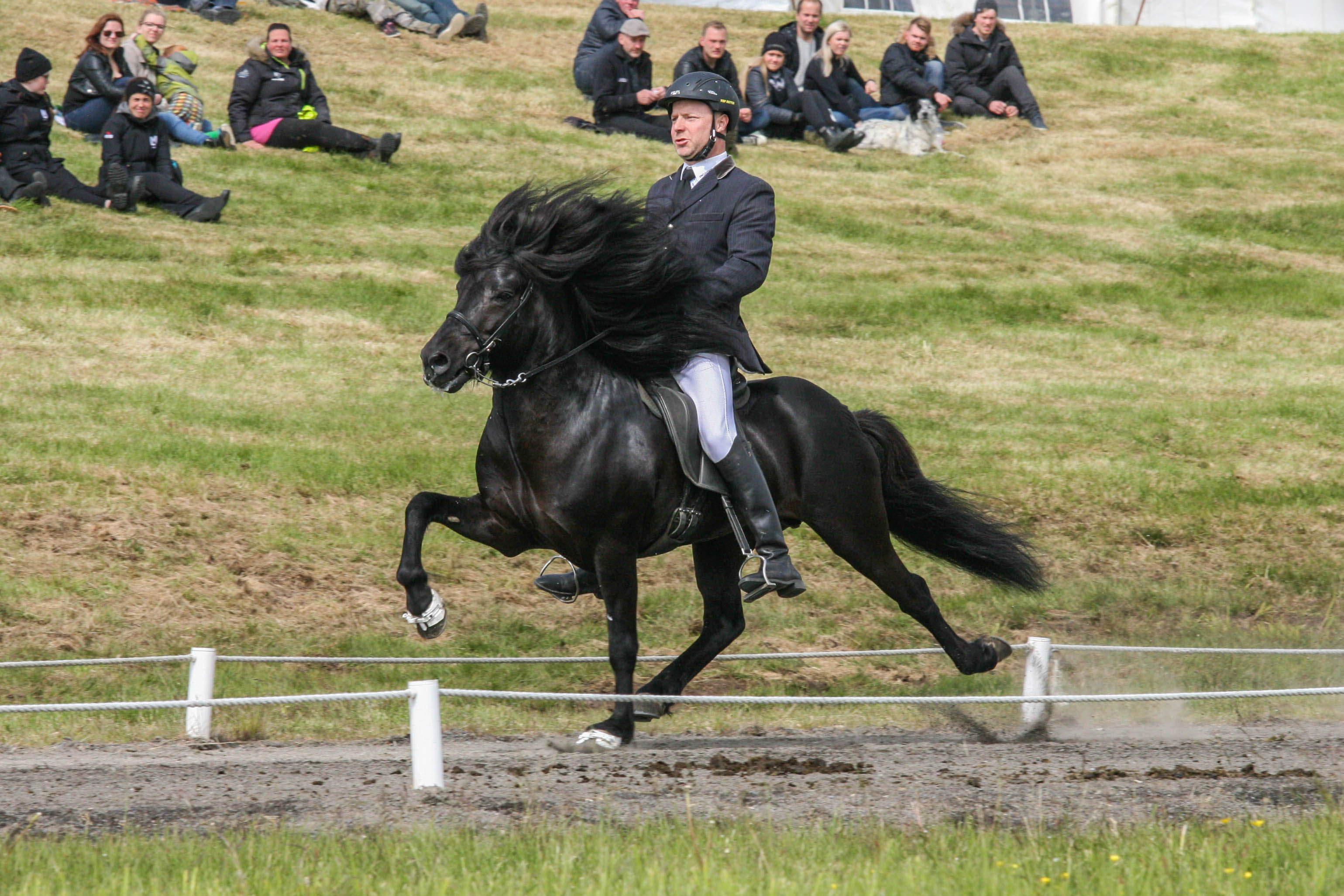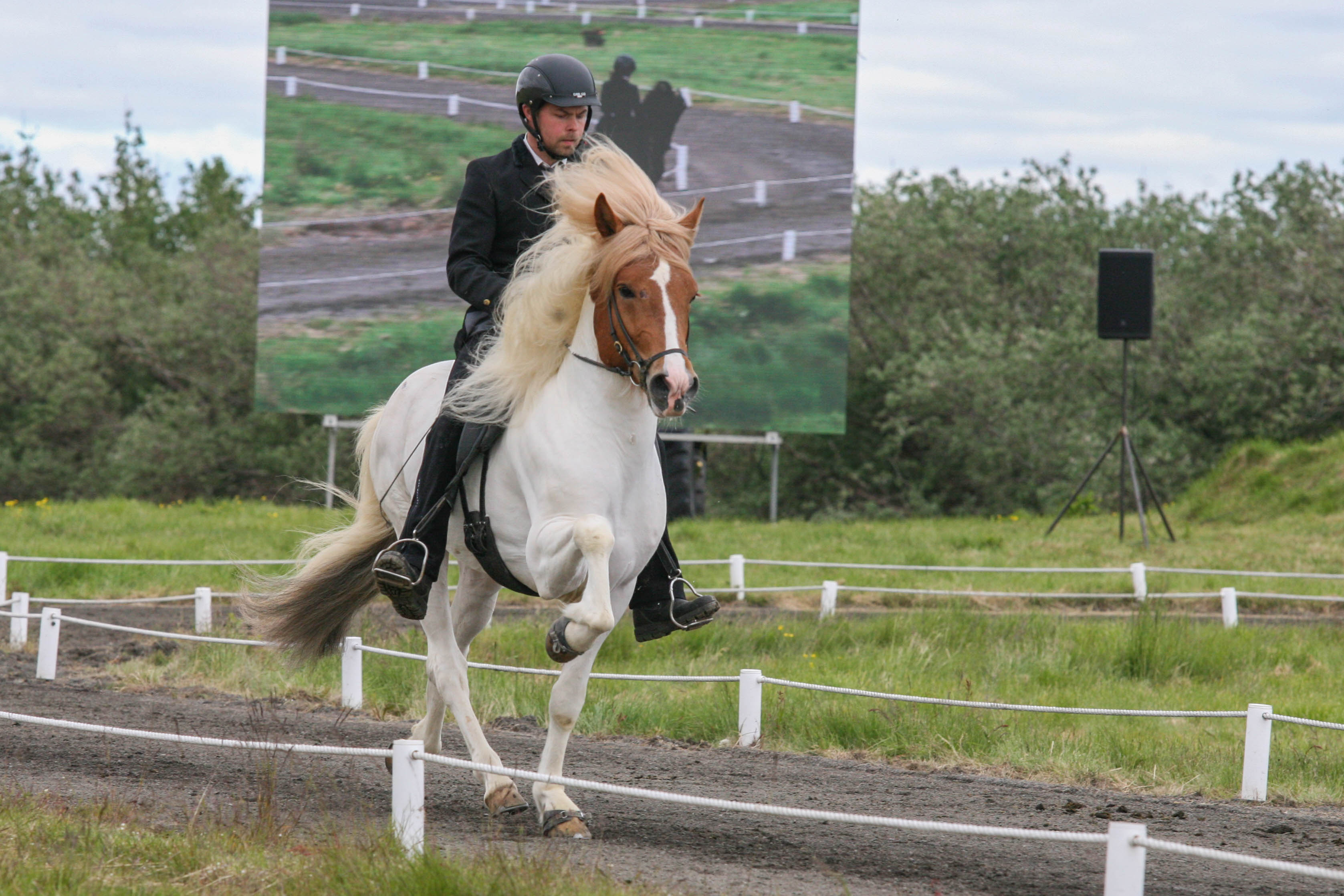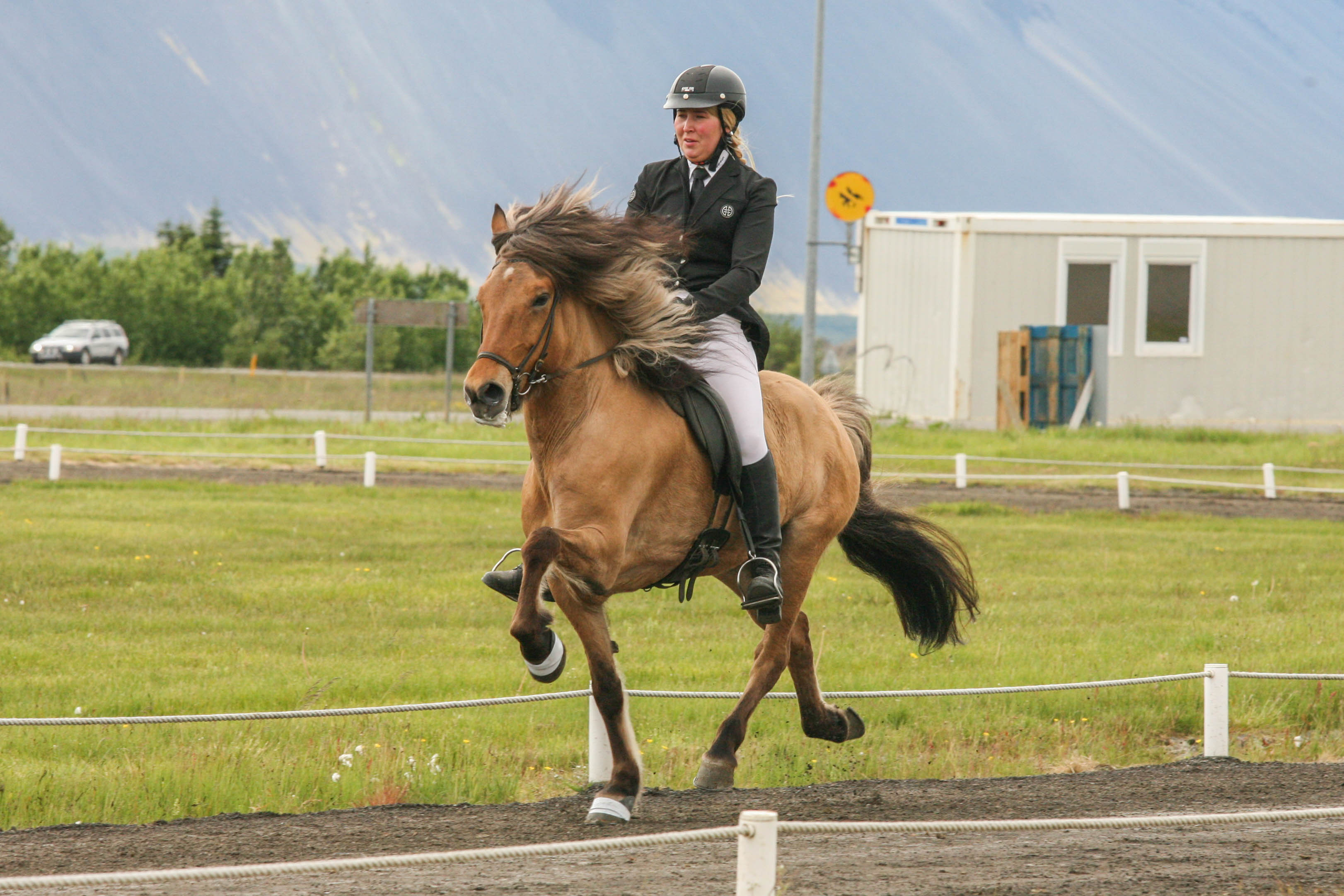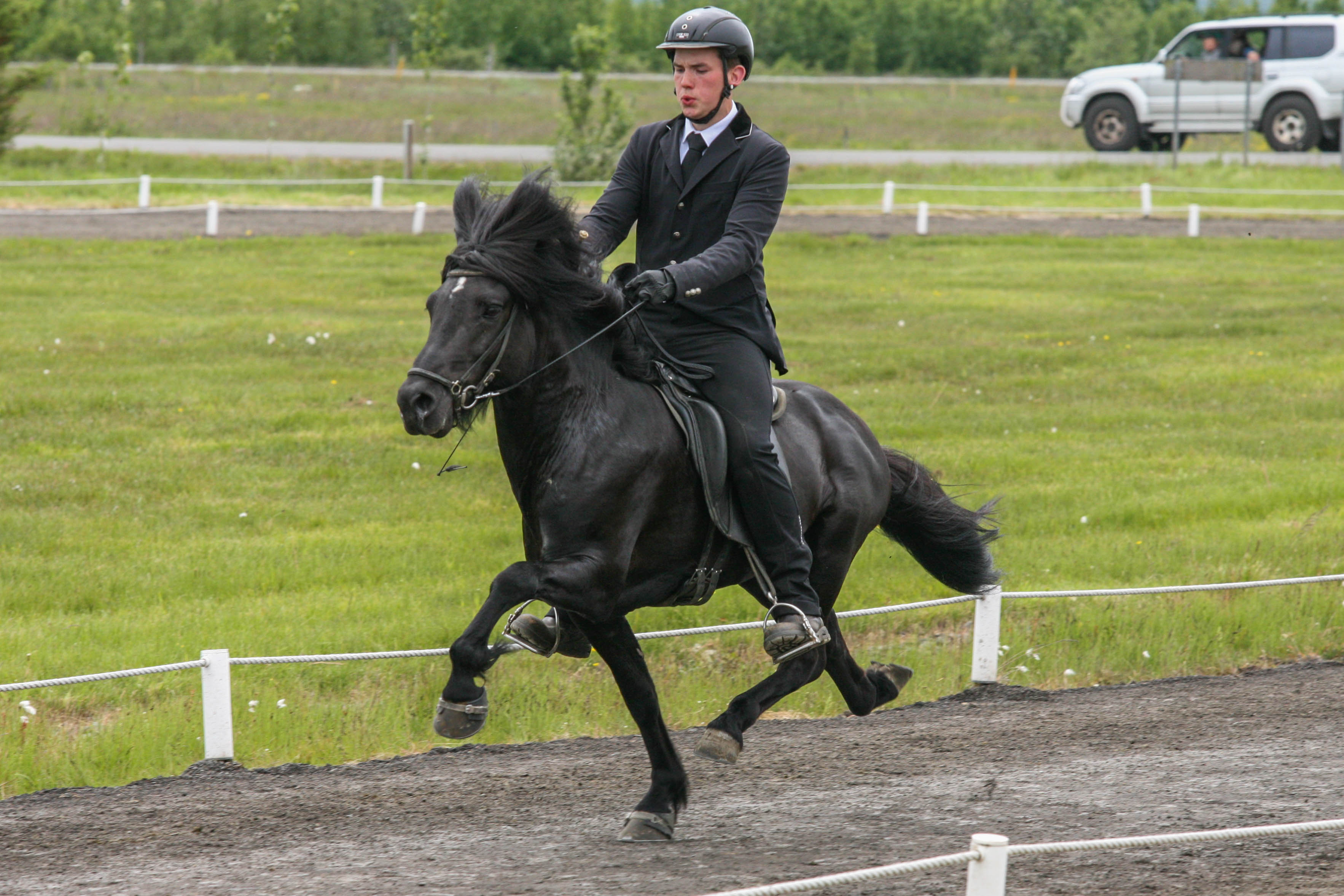 Kalsi frá Þúfum setinn af Mette Mannseth ásamt Gísla Gíslasyni.