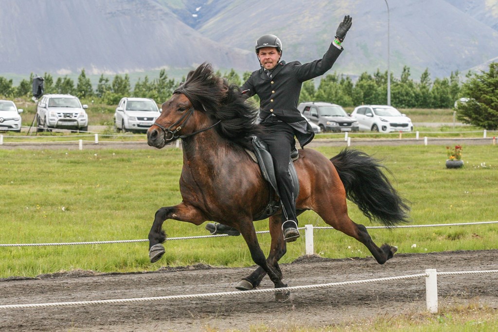 Knapi mótsins, Skapti Steinbjörnsson og Hrafnista frá Hafsteinsstöðum.