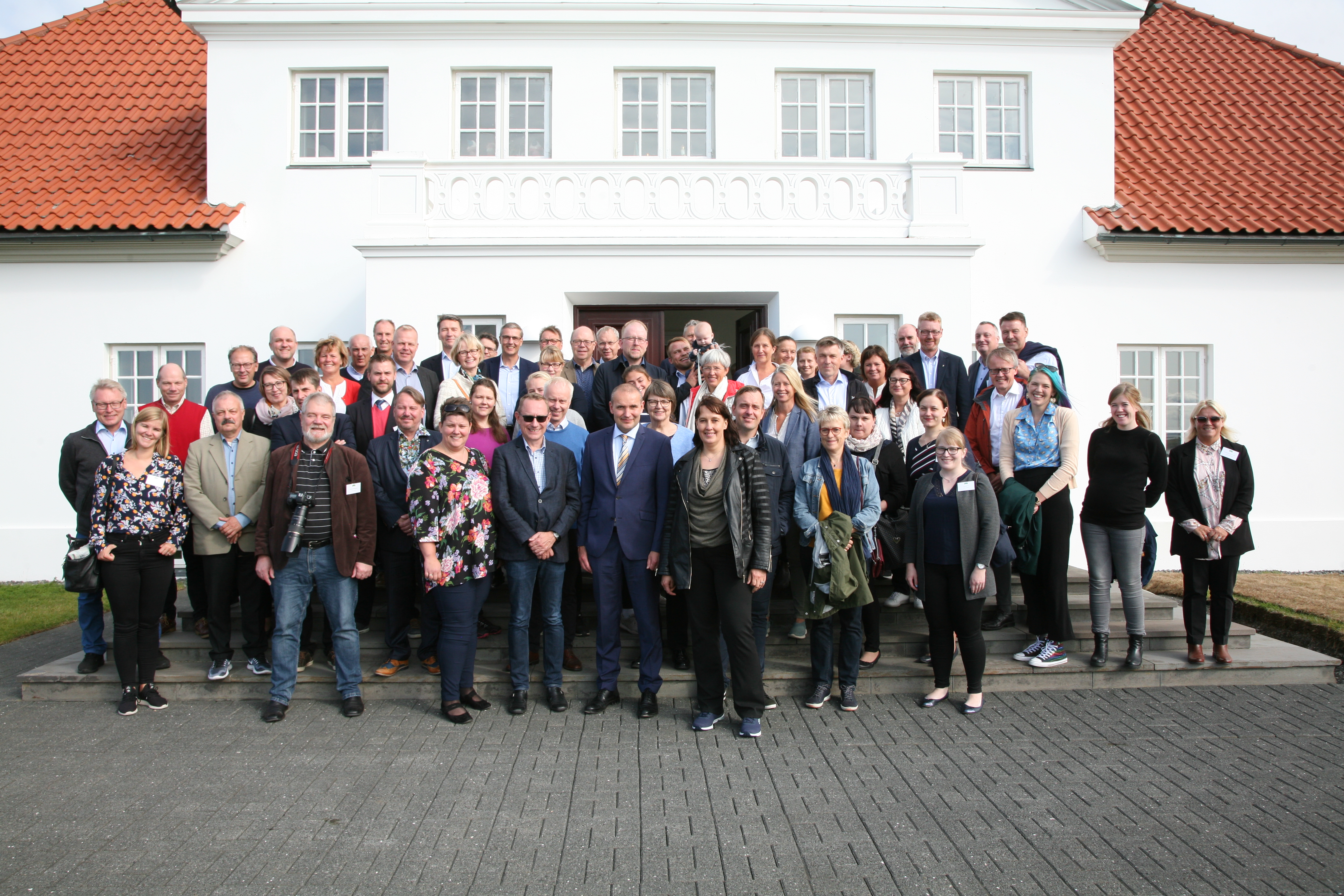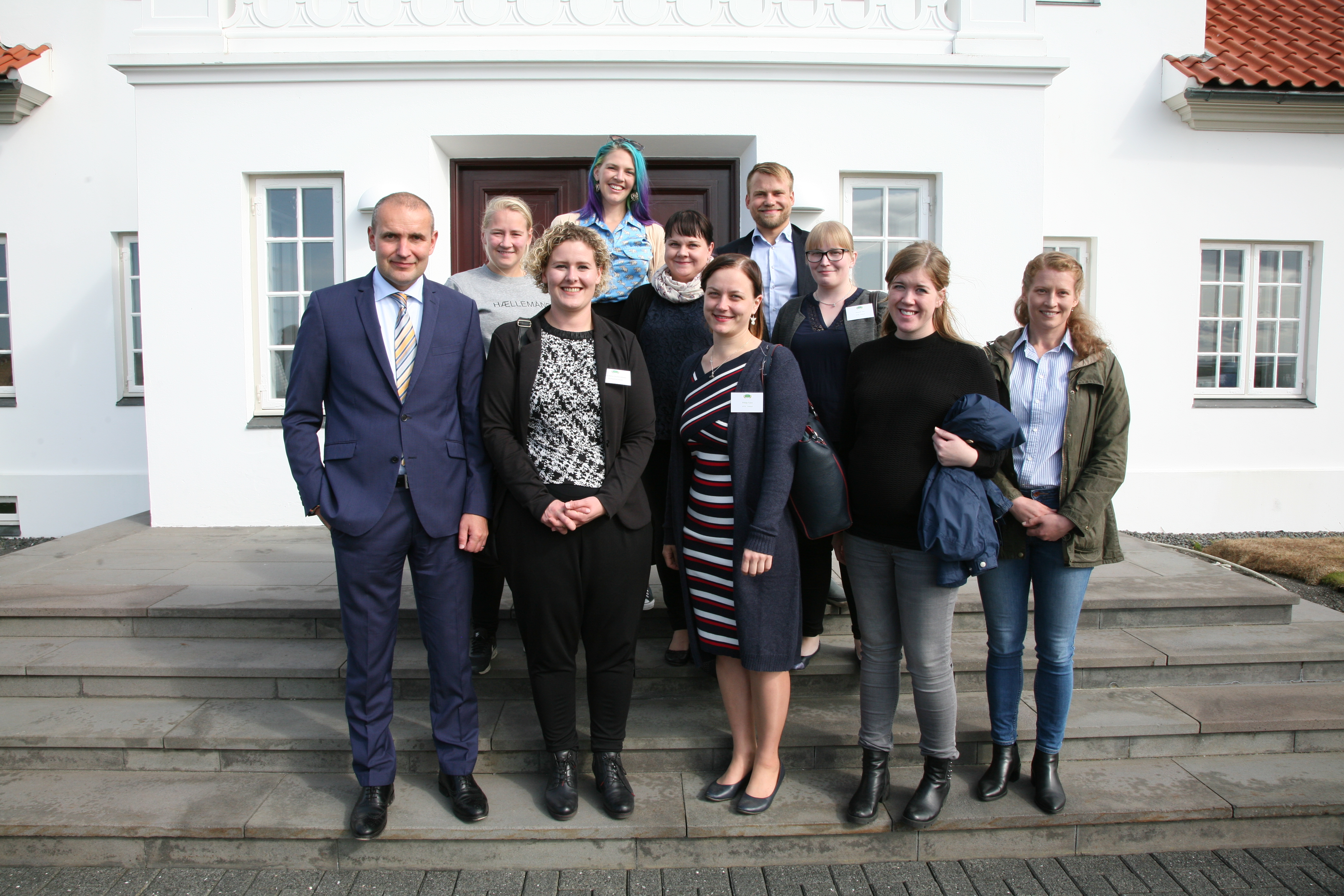 Fulltrúar ungra bænda á Norðurlöndunum með Guðna forseta á tröppunum á Bessastöðum.
