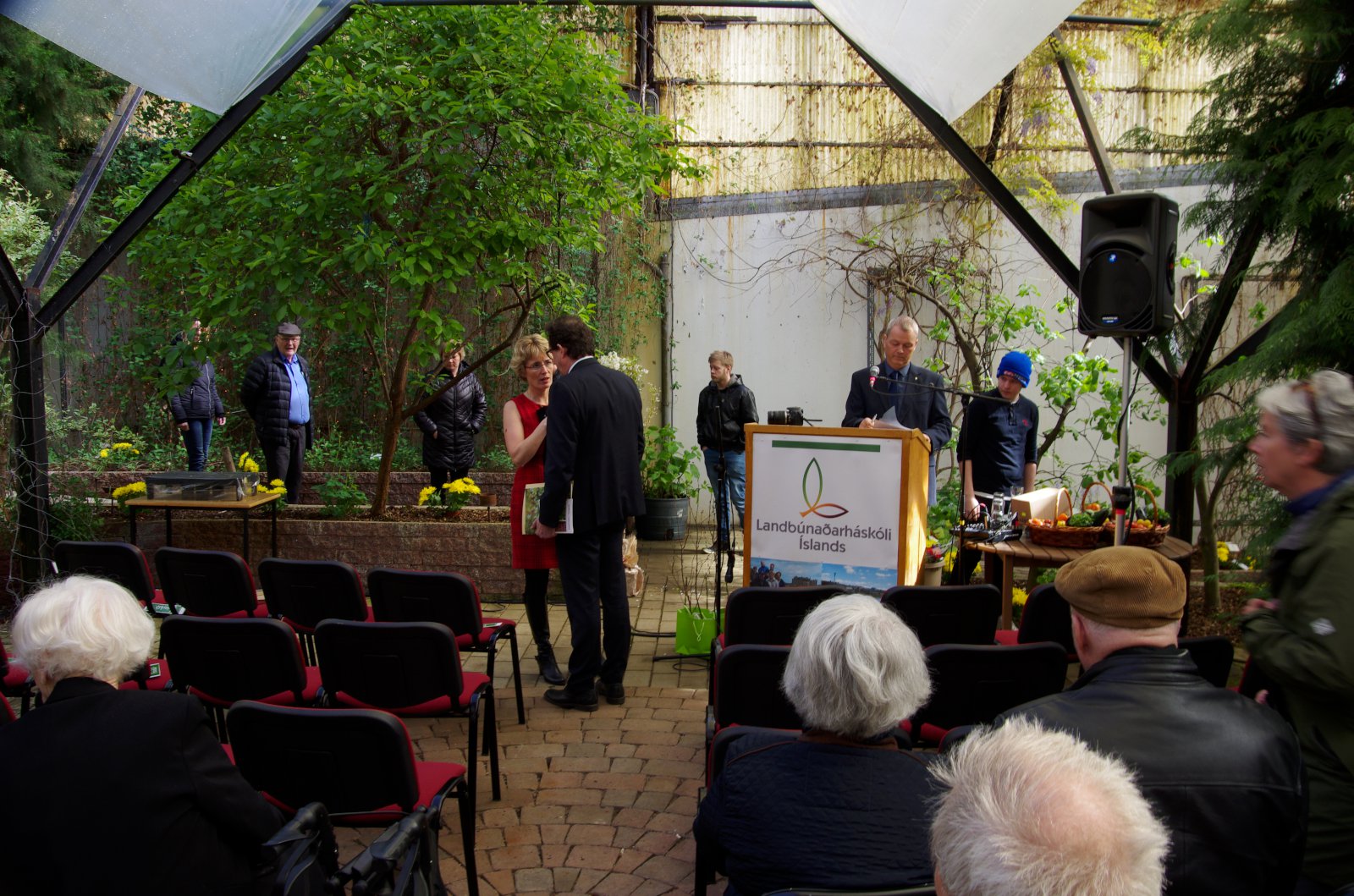 Björgvin Örn Eggertsson, verkefnastjóri að Reykjum, var kynnir á hátíðinni og fannst ekki leiðinlegt að geta kynnt á svið gamlan skólabróður, fyrrverandi Garðhrepping og núverandi Garðbæing á Bessastöðum, Guðna Th. Jóhannesson, forseta Íslands.