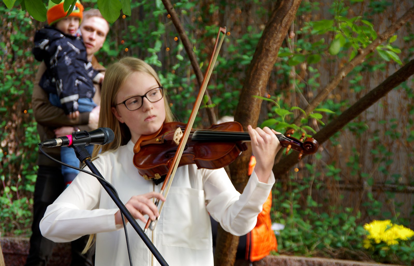 Bergdís Rúnarsdóttir, nemandi í Tónlistarskóla Kópavogs lék á fiðlu fyrir forsetann, ráðherra og aðra gesti á athöfninni að Reykjum.
