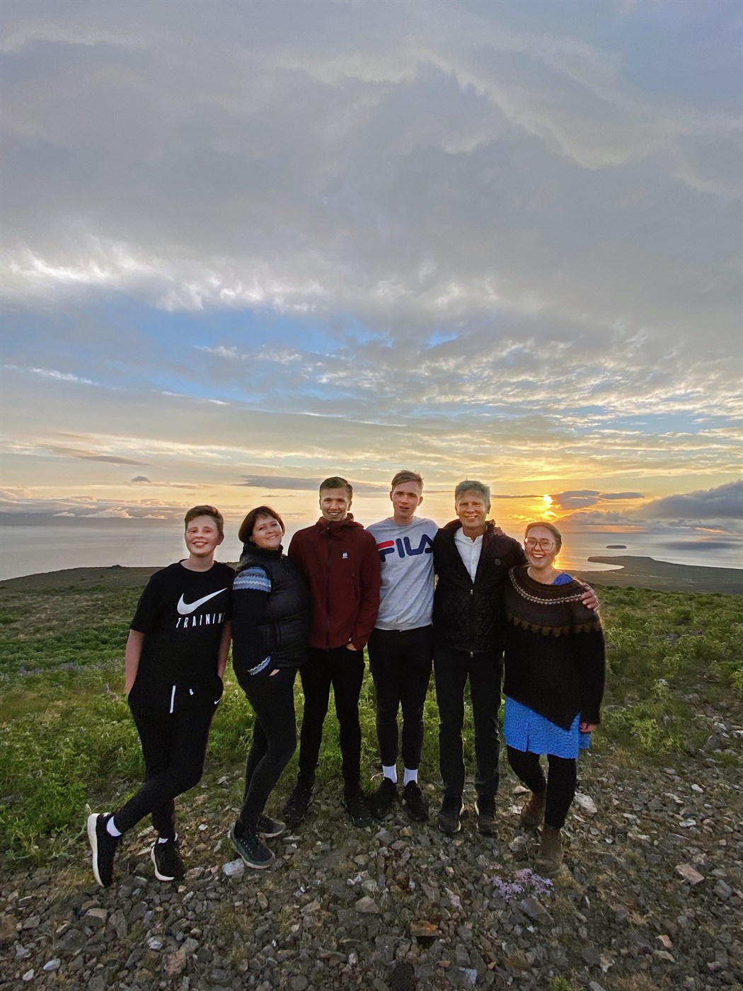 Stefanía Hjördís Leifsdóttir og Jóhannes Ríkarðsson á Brúnastöðum með börnum sínum Ríkeyju Þöll, meistaranema í umhverfisstjórnmálum í Stokkhólmi, Kristni Knörr, nema í landfræði við HÍ, Ólafi Ísari, sem útskrifaðist frá MA síðasta vor og Leifi í 9. bekk.