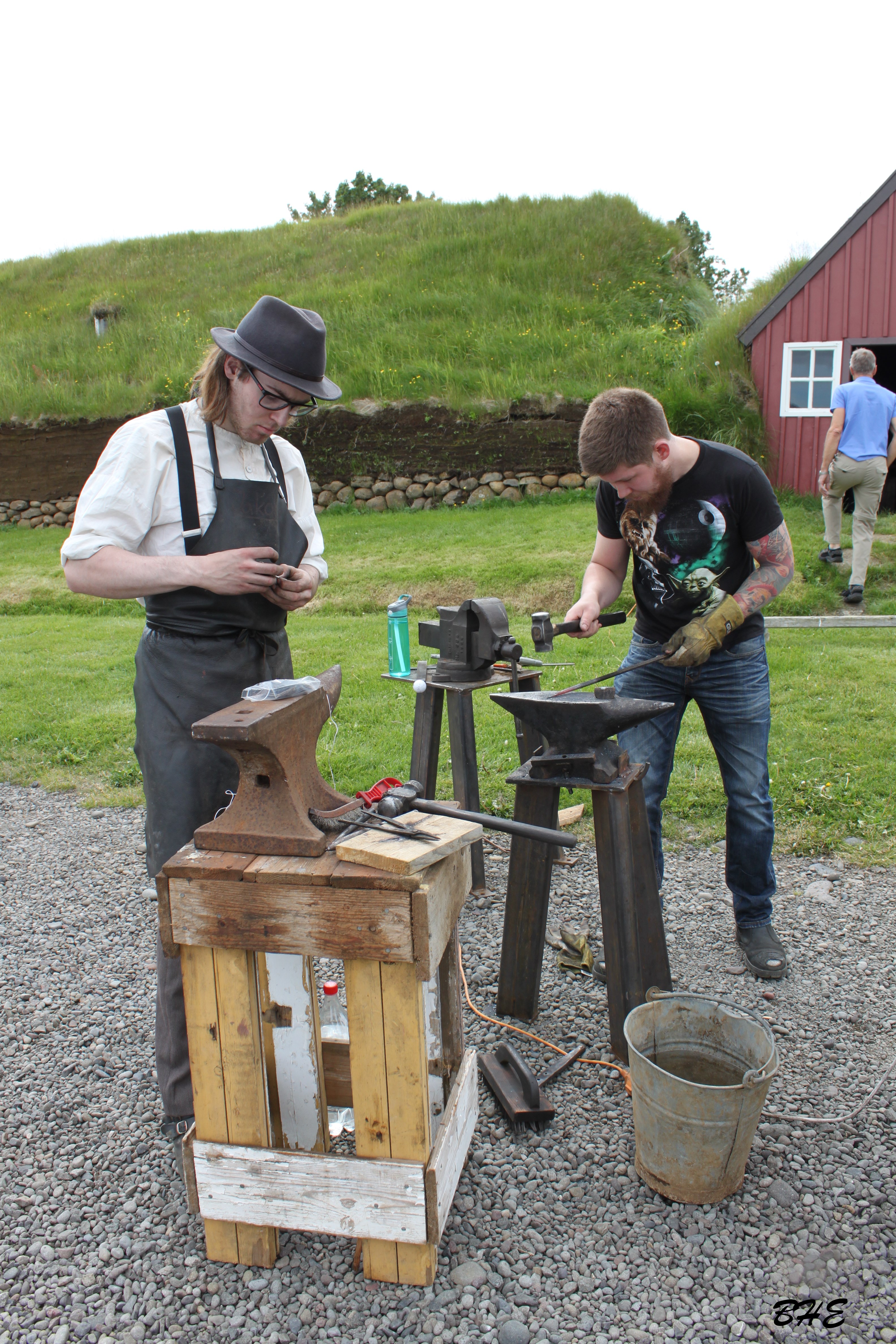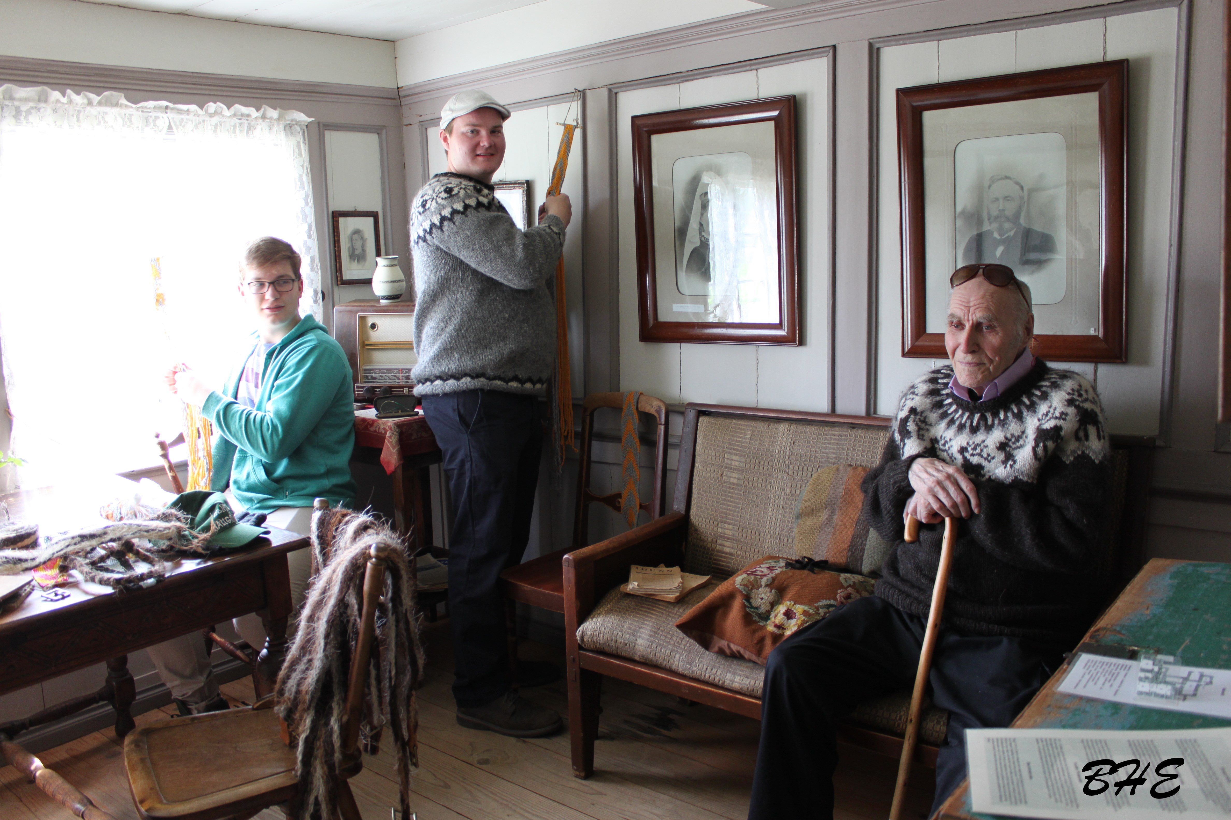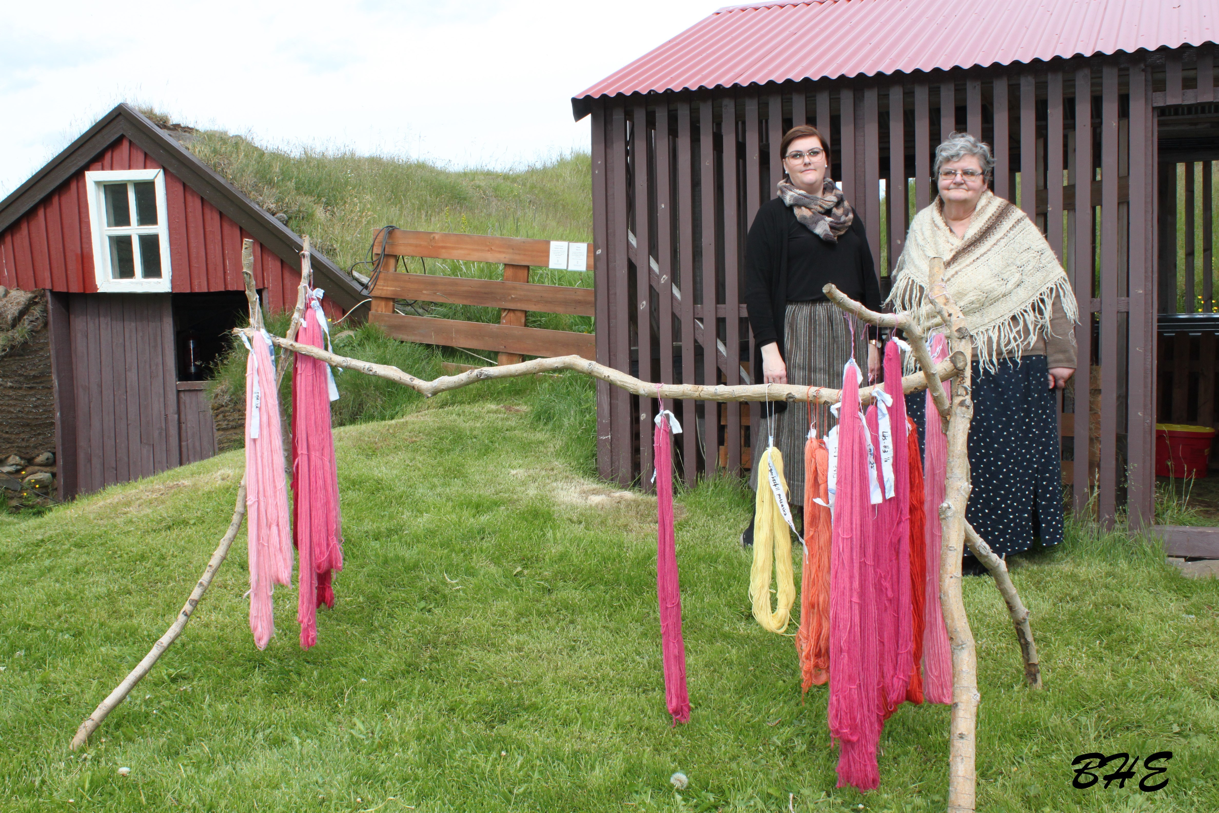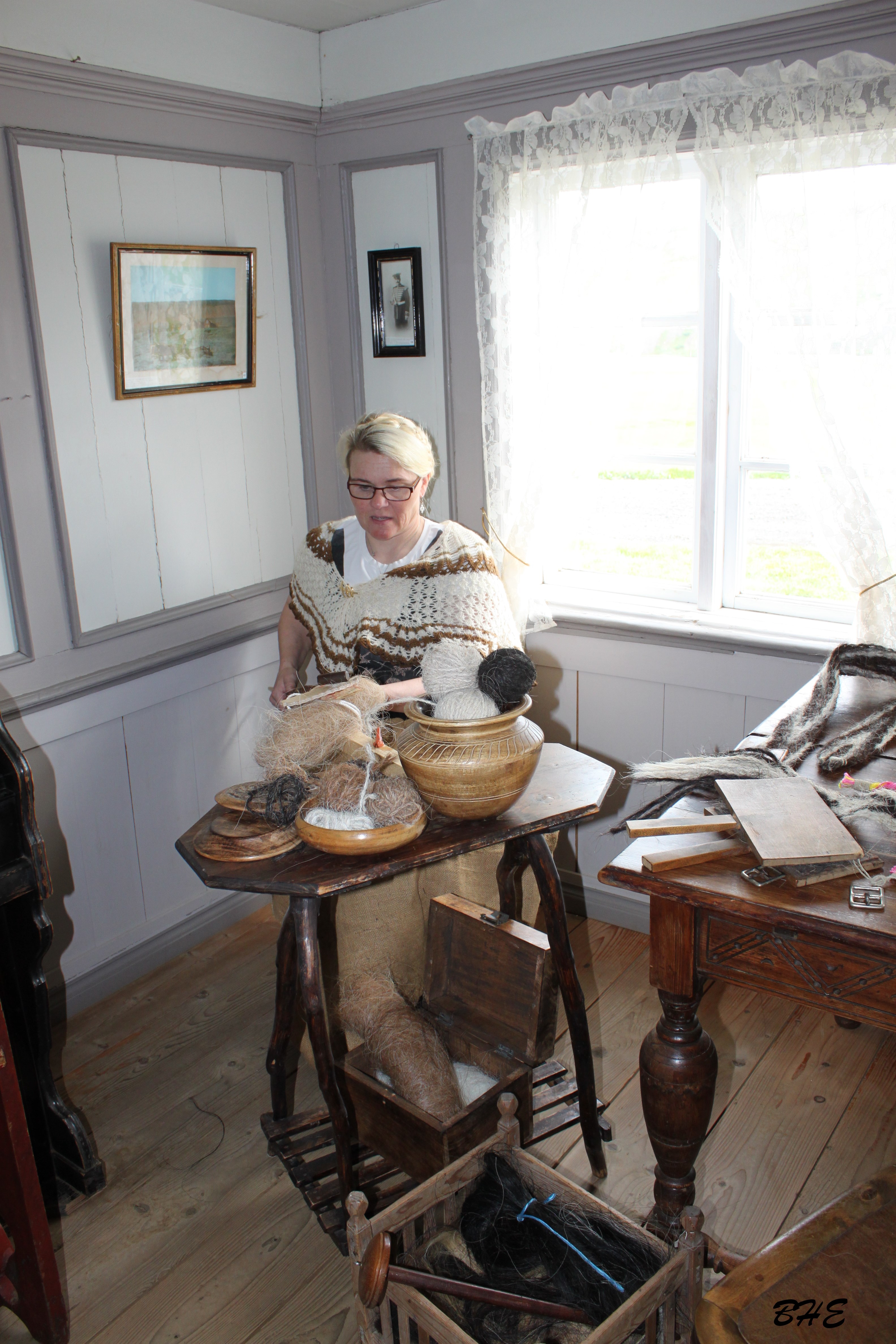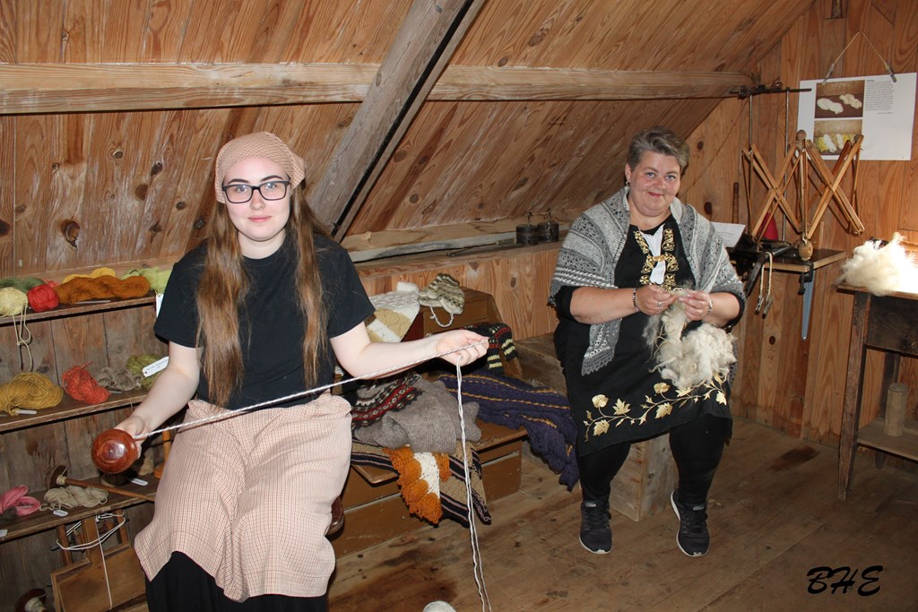 Inni í bæ var fólk að störfum við prjónaskap, útsaum, vefnað, ýmiss konar ullarvinnslu og hrosshársspuna. Þá var og sýnd jurtalitun úr íslenskri náttúru.