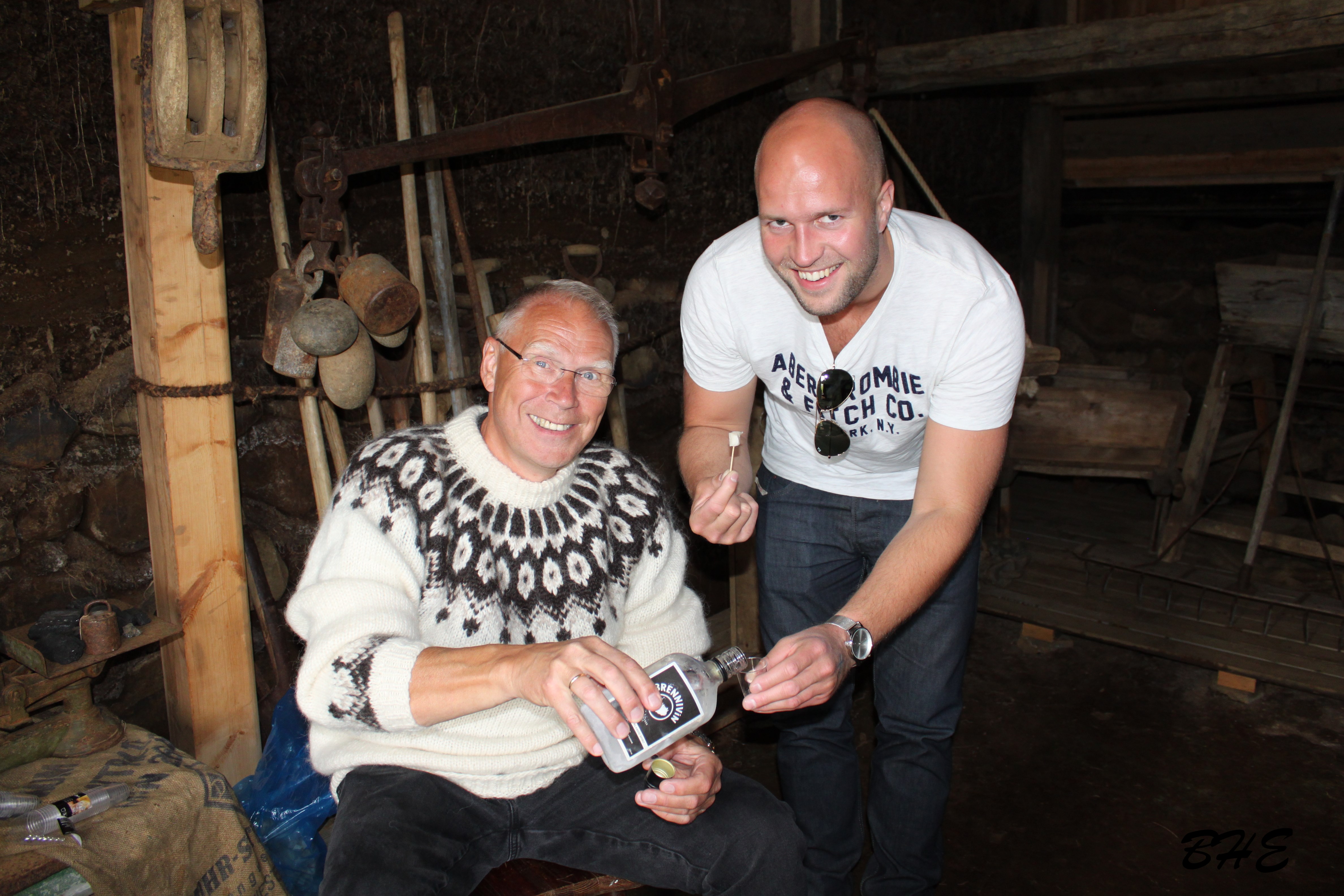 Karlpeningurinn í Vopnafirði gæddi sér á hákarli og brennivíni í tilefni dagsins.