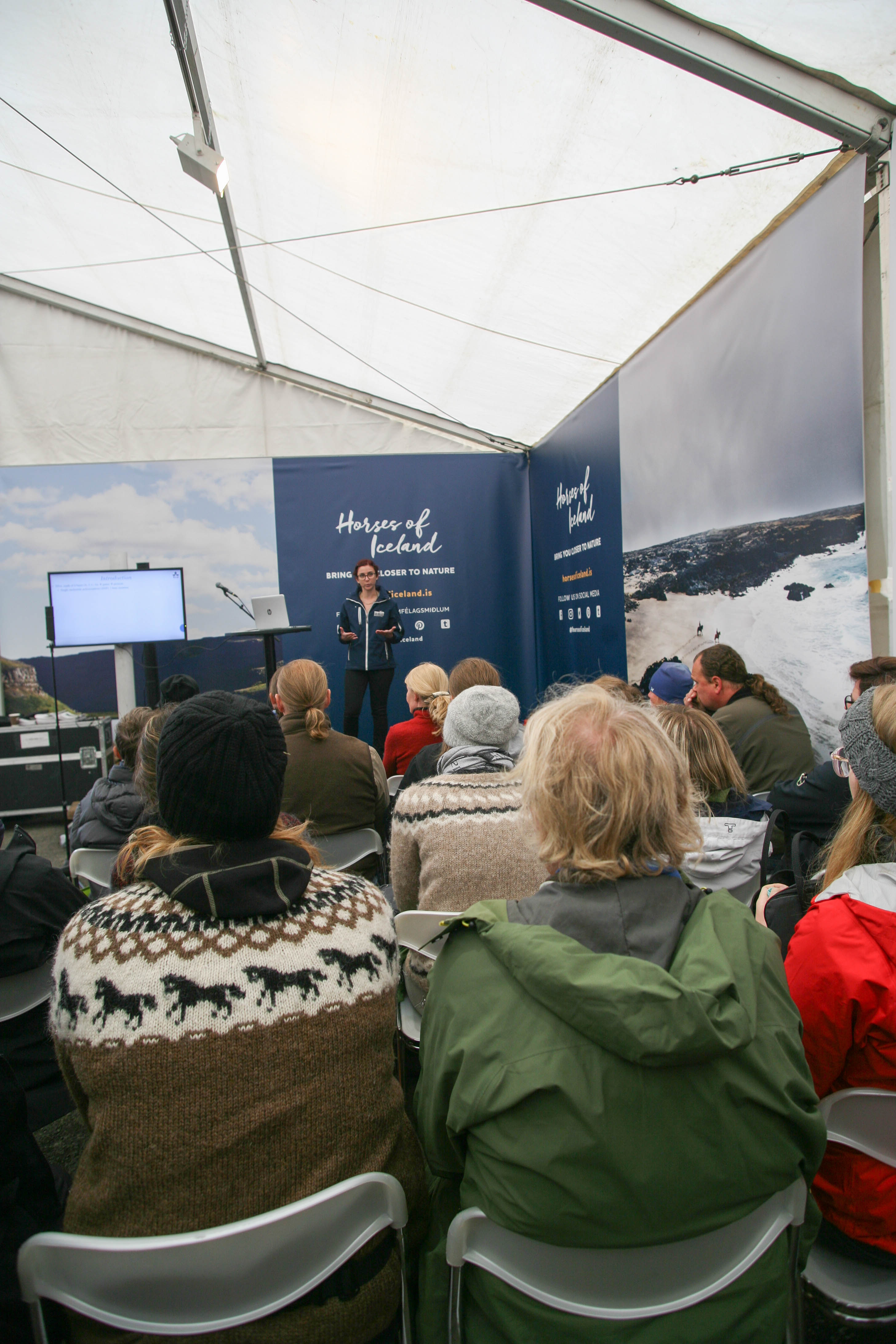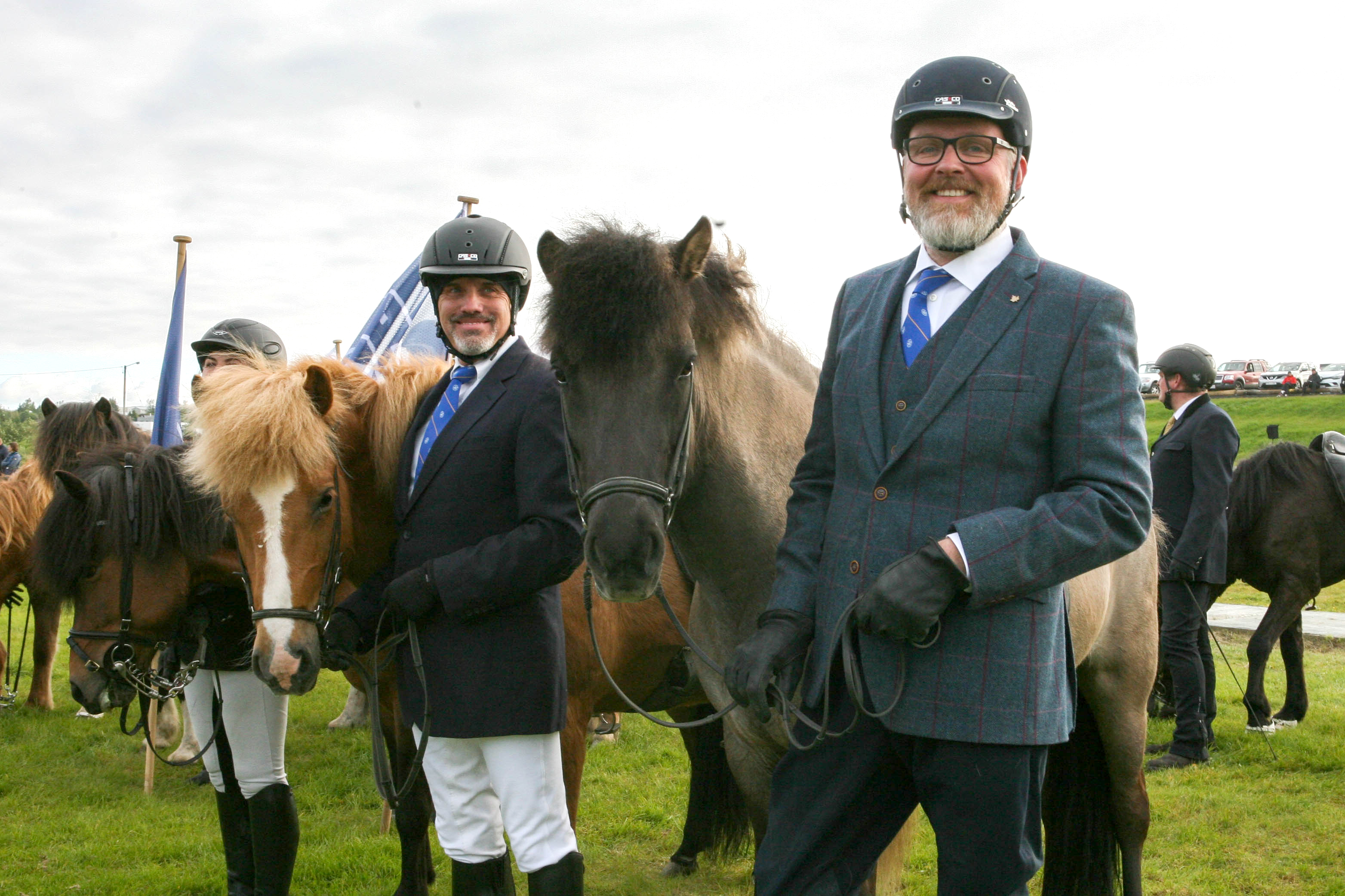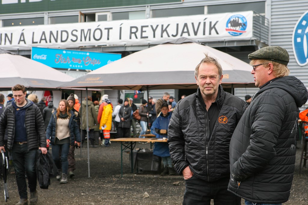 Hátíðlegur blær var yfir setningarathöfninni. Fulltrúi frá Félagi tamningamanna og prúður vindóttur hestur í forgrunni.