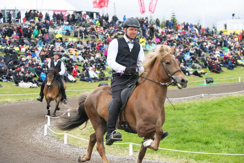 Það er eflaust mikil og gleðileg upplifun að fá að koma fram á Landsmótinu frammi fyrir þúsundum áhorfenda með hestinn sinn.