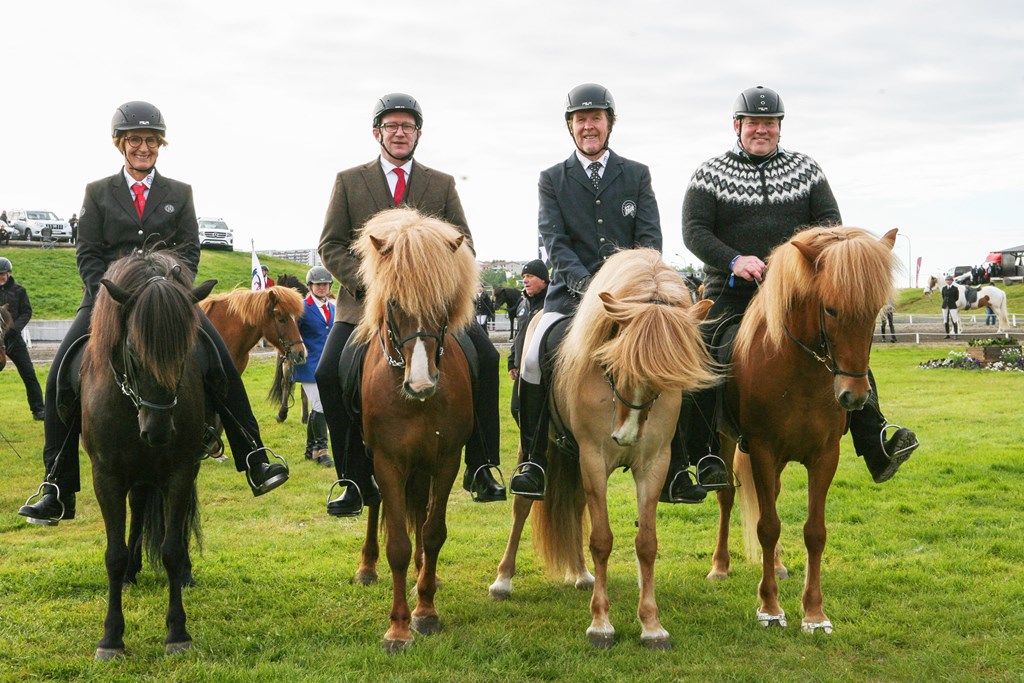 Jóna Dís Bragadóttir, varaformaður LH, Kristján Þór Júlíusson sjávarútvegs- og landbúnaðarráðherra, Sigurbjörn Bárðarson afreksknapi og Sigurður Ingi Jóhannsson samgöngu- og sveitastjórnarráðherra tóku þátt í setningarathöfninni.