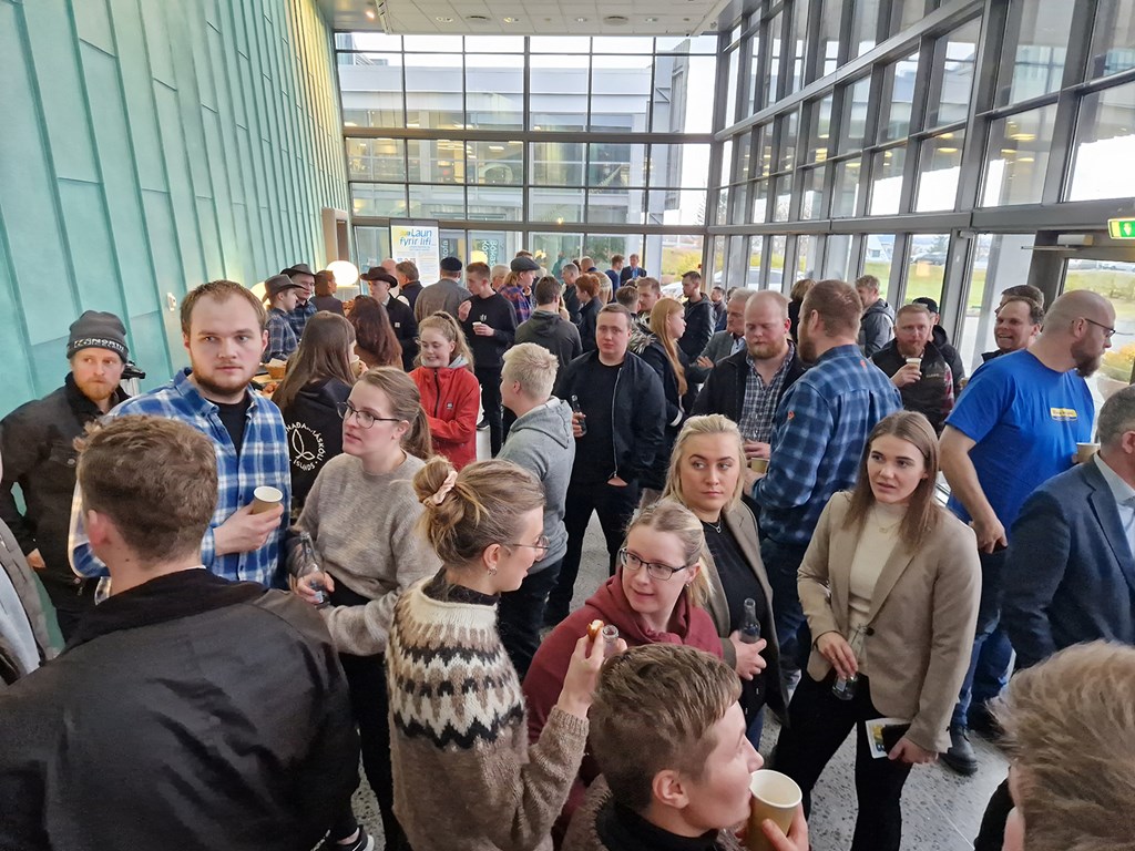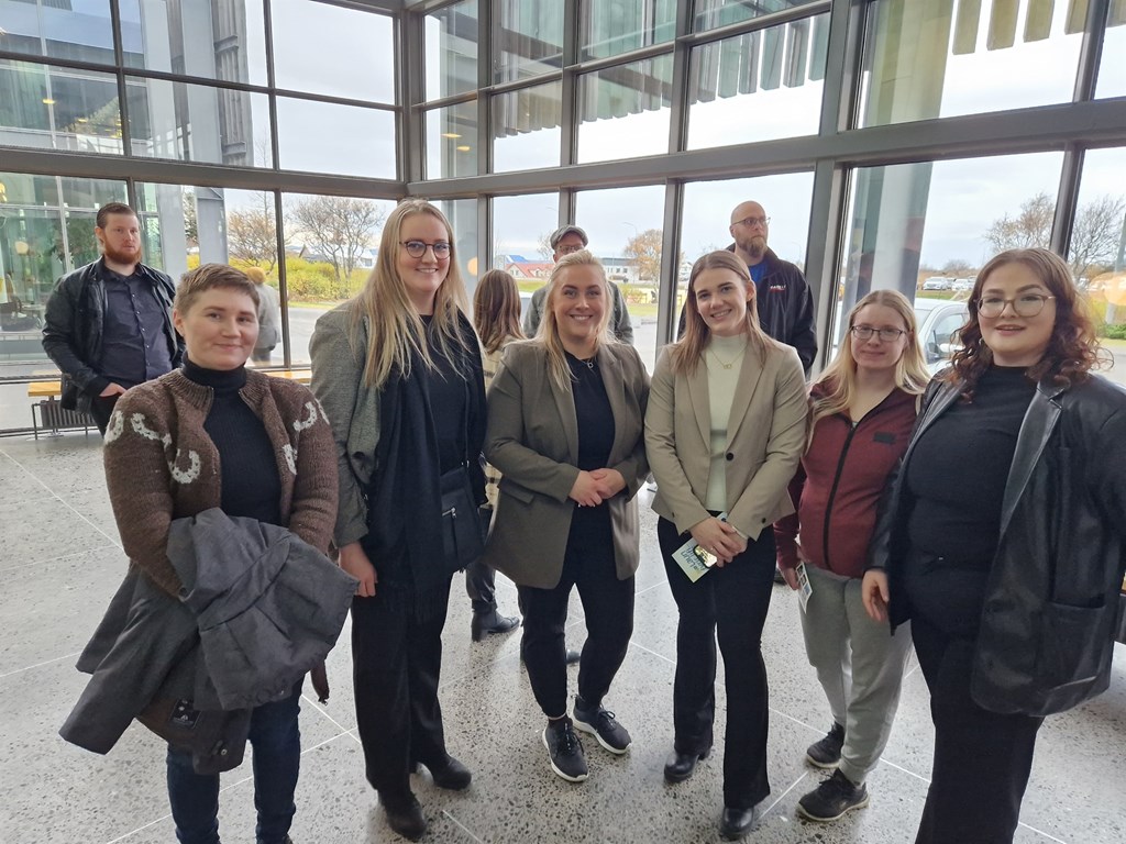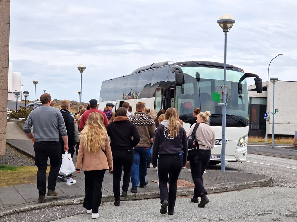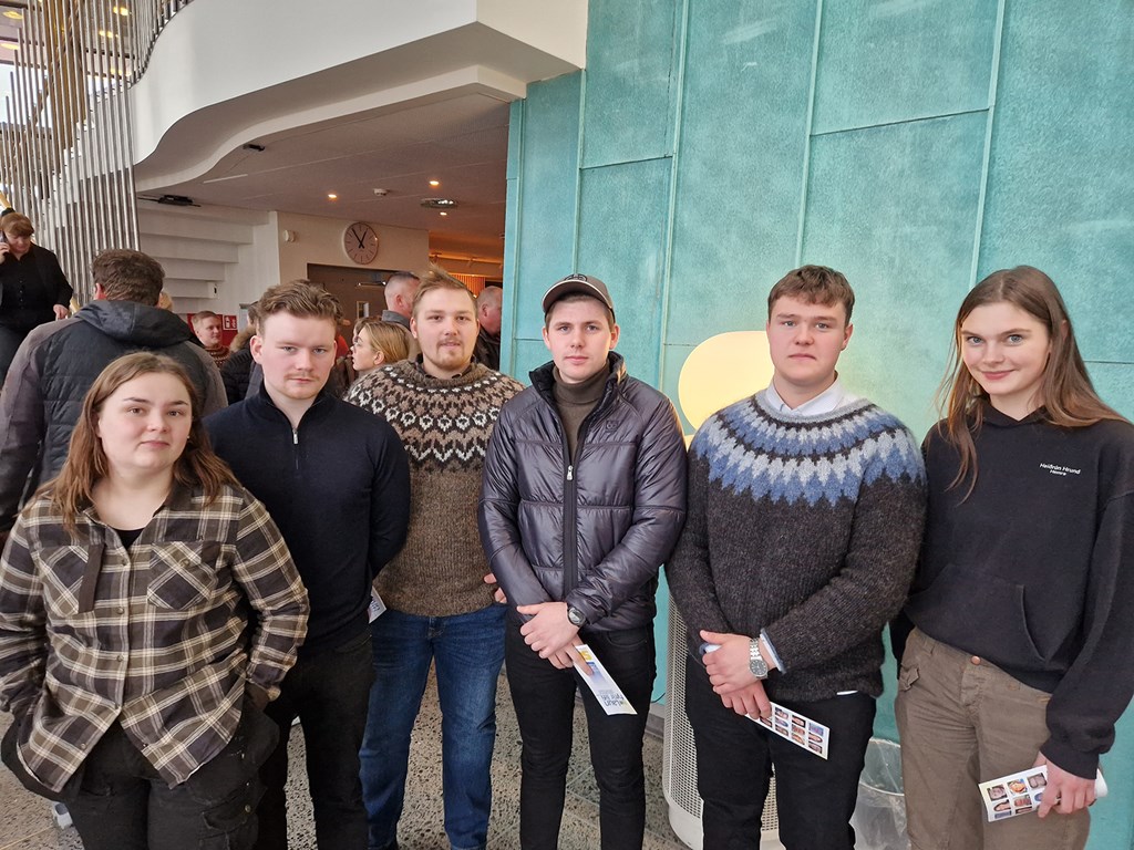 Nemendur á Hvanneyri komu í Kópavoginn með rútu. Gefið var frí frá kennslu, enda snerti viðfangsefni fundarins framtíð þeirra.