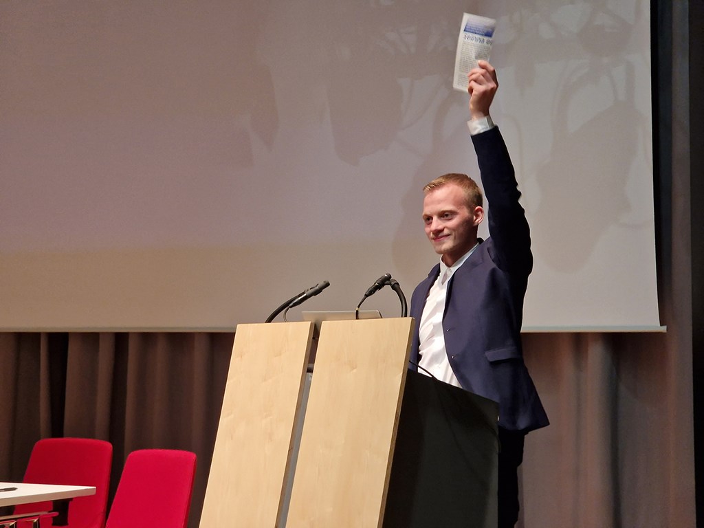 Ályktun baráttufundar Samtaka ungra bænda fyrir launum og lífi í sveitum landsins var samþykkt með dynjandi lófataki. Hér endar Steinþór Logi Arnarsson, formaður SUB, vel heppnaðan fund.