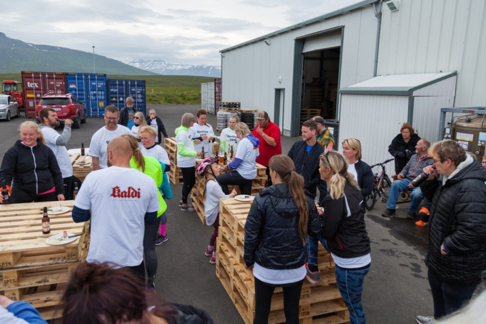 Frá móttöku hóps í gamla frystihúsinu á Siglufirði sem nú hýsir brugghús Seguls 67 og móttökusal.