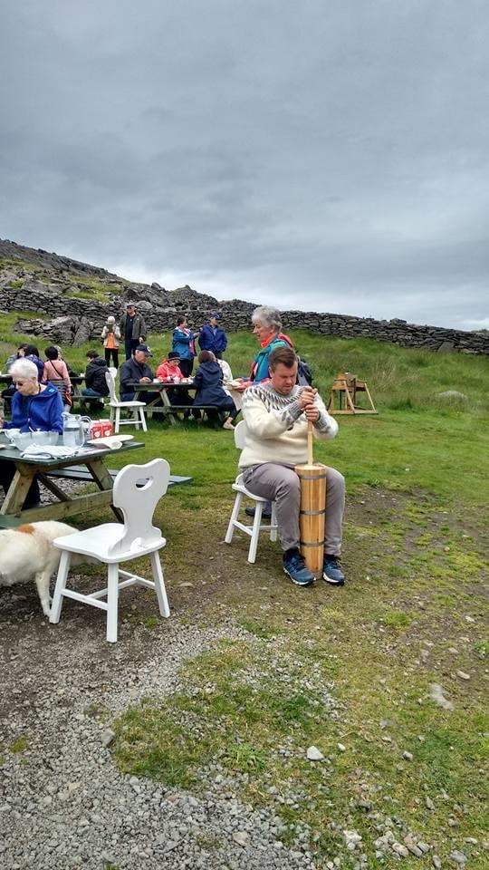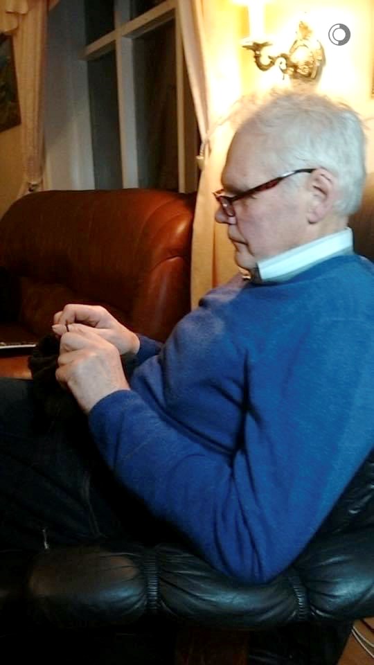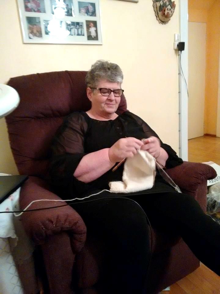 Sigríður Hafliðadóttir við prjónaskapinn, hún tekur við þegar Kristján hefur prjónað bolinn.