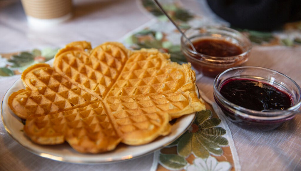 Vaffla með sultum.