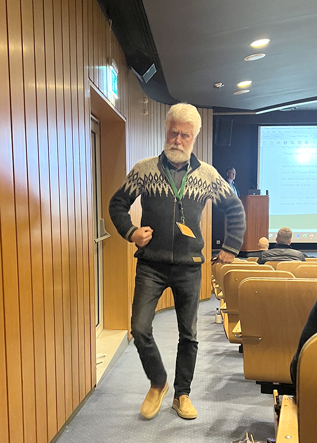 Unnsteinn Snorri Snorrason verkefnastjóri BÍ. kynnir Steingrím J. Sigurðsson í pontu.