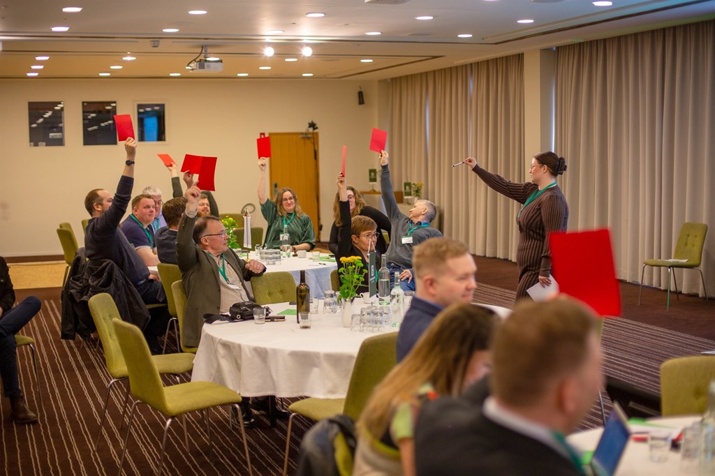 Á föstudeginum var kosið um ályktanir. Hér stóð atkvæðagreiðslan tæpt og þurfti Rebekka Rut Leifsdóttir því að telja atkvæðin.