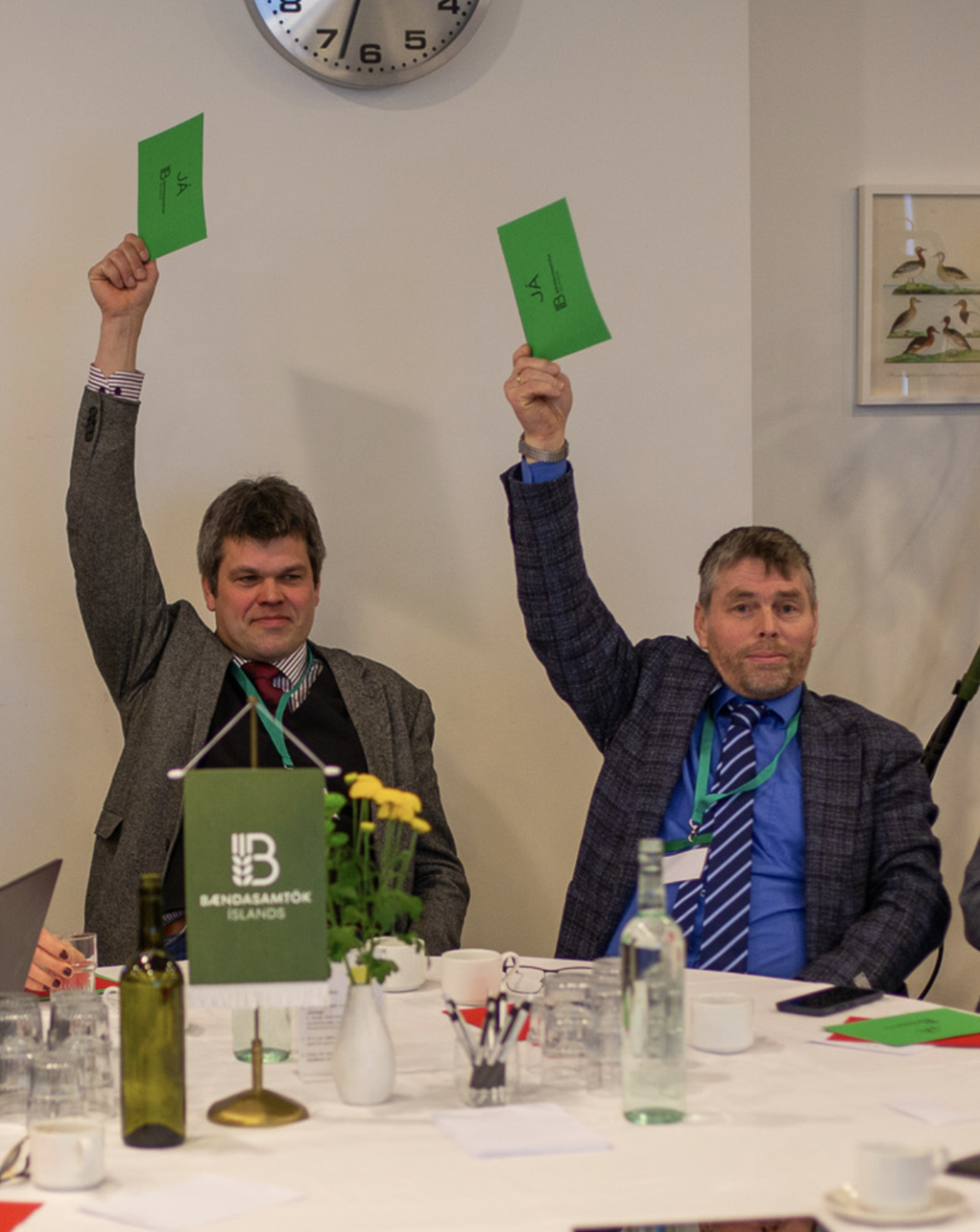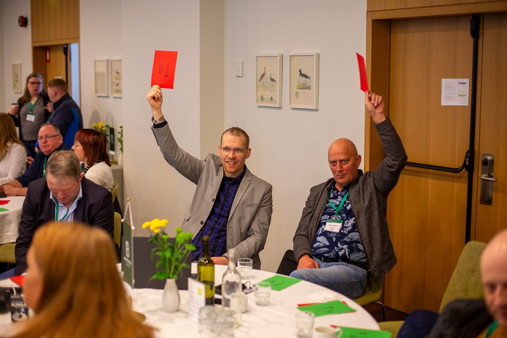 Jón Helgi Helgason og Óskar Kristjánsson lyftu báðir rauðum spjöldum þegar kosið var um eina af ályktununum.