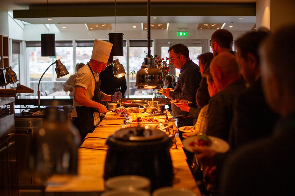 Séð var til þess að búnaðarþingsfulltrúar fengju nóg að borða. Á föstudeginum var hlaðborð á hótelinu.