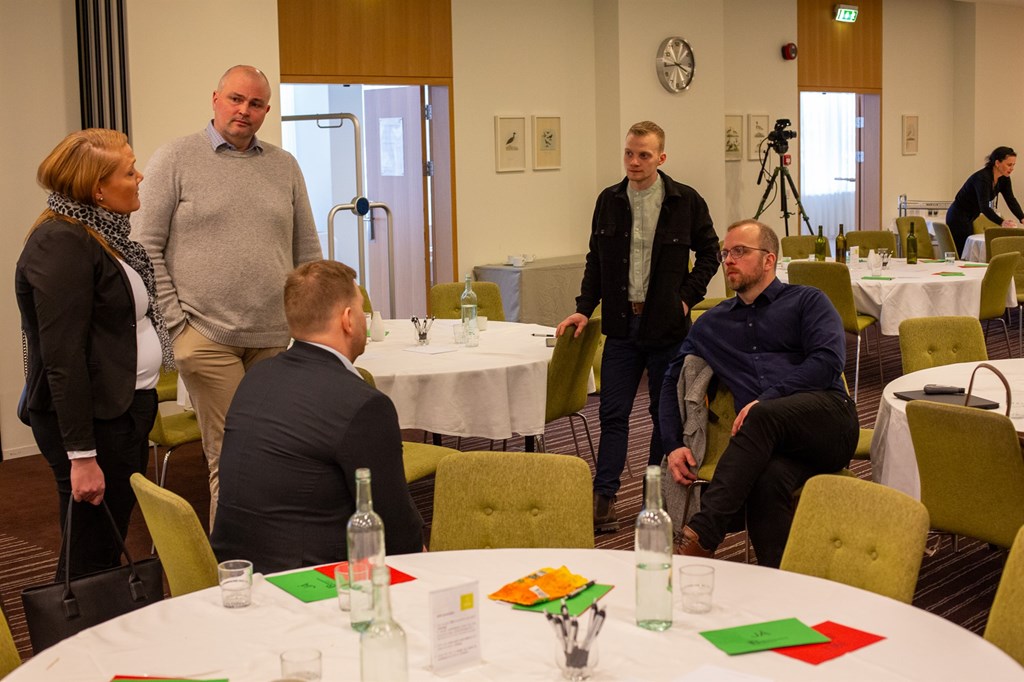 Hluti nýrrar stjórnar Bændasamtaka Íslands ræðir málin óformlega í lok Búnaðarþings.