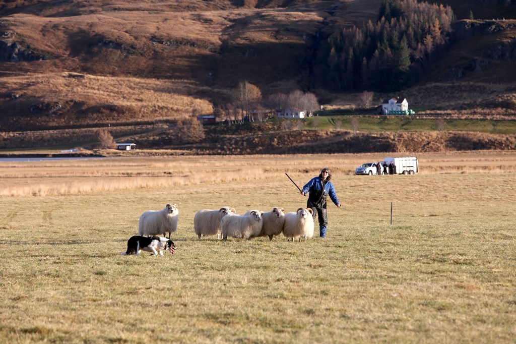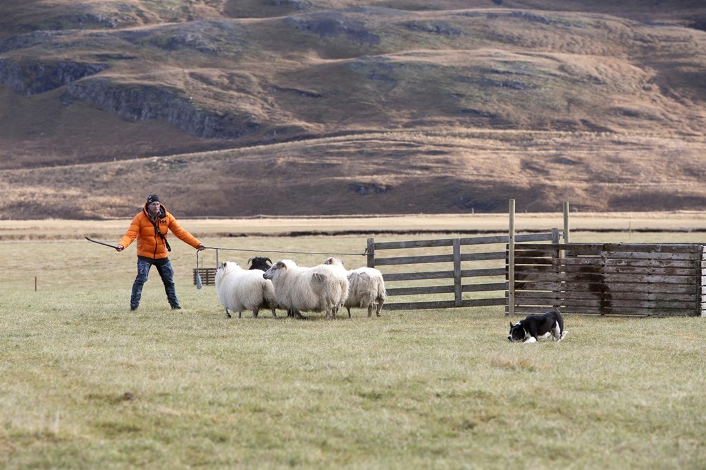 Rune Brumoen frá Ásunnarstöðum í Breiðdal sýnir hér snilldartakta ásamt fjárhundinum Lynn. Mynd / Gunnar Gunnarsson