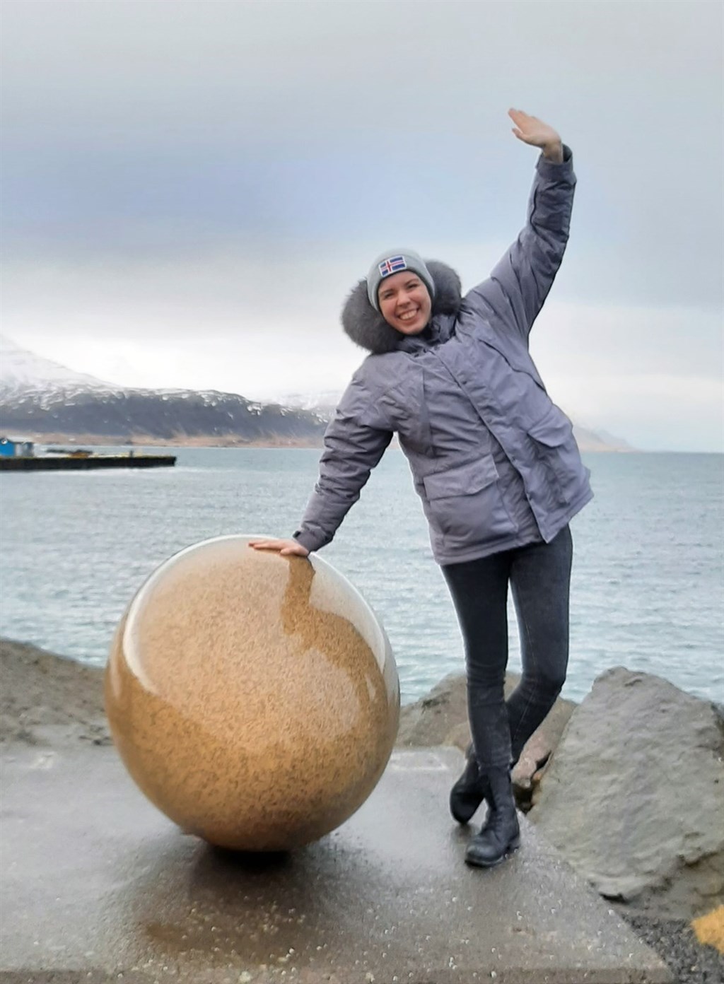 Pála og tveir nemendur úr sjálfbærnibraut Hallormsstaðaskóla á kynningu.