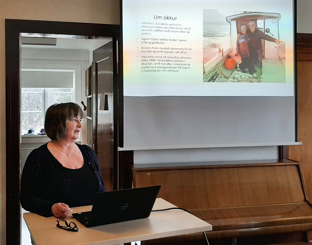 Halla Eiríksdóttir kynnir sína hug- mynd fyrir námskeiðsfulltrúum.