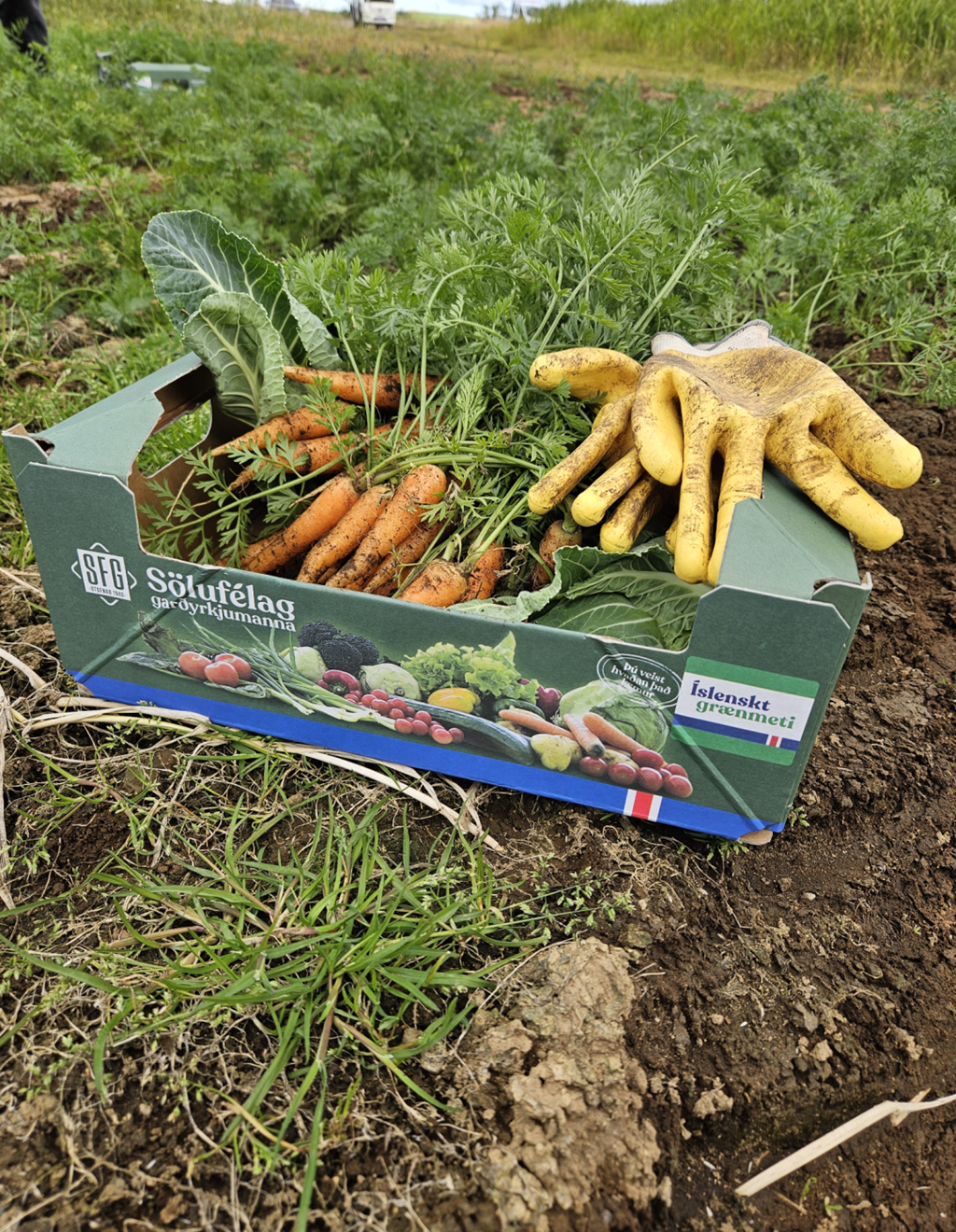 Nemendur fengu að taka með sér fullan kassa af útiræktuðu grænmeti frá Jörfa til að prófa að matreiða með.