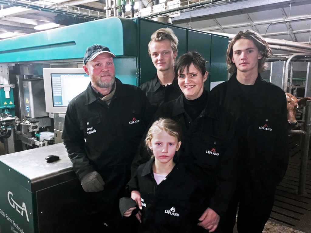 Ábúendur í Fellshlíð í Eyjafjarðarsveit, Elín Margrét Stefánsdóttir og Ævar Hreinsson, ásamt börnum sínum, Erni, Þór og Evu Ævarsbörnum. Elsta soninn, Jóhann Jóhannesson, sem er þjónustufulltrúi hjá Líflandi, vantar á myndina.