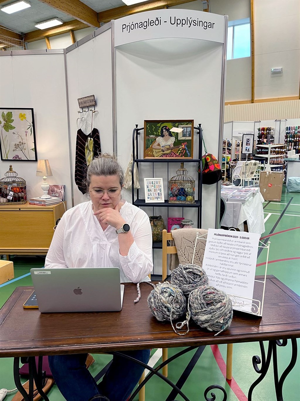 Kjóllinn hennar Mirabel úr Disney-teiknimyndinni Encanto var hluti af sýningu sem var á Prjónagleðinni 2023.