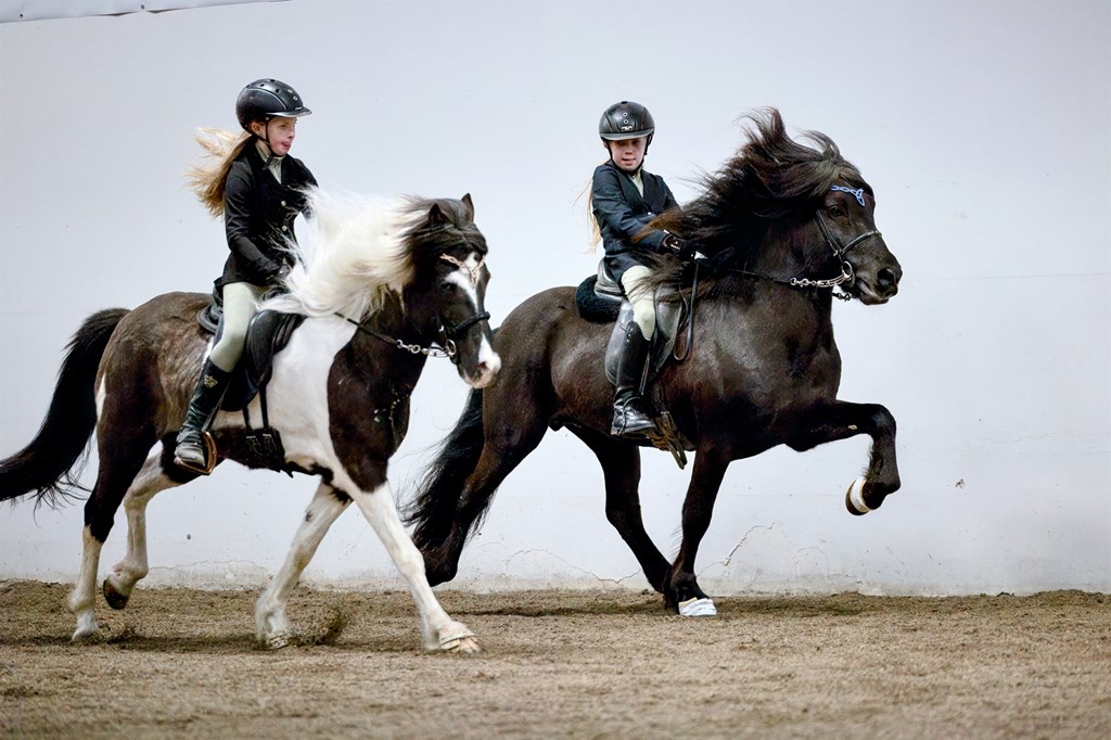 Frænkurnar Una Björt Valgarðsdóttir og Viktoría Huld Hannesdóttir léku listir sínar á gæðingunum Öglu frá Ási 2 og Þin frá Enni.