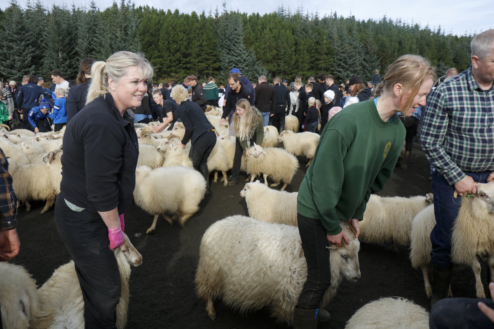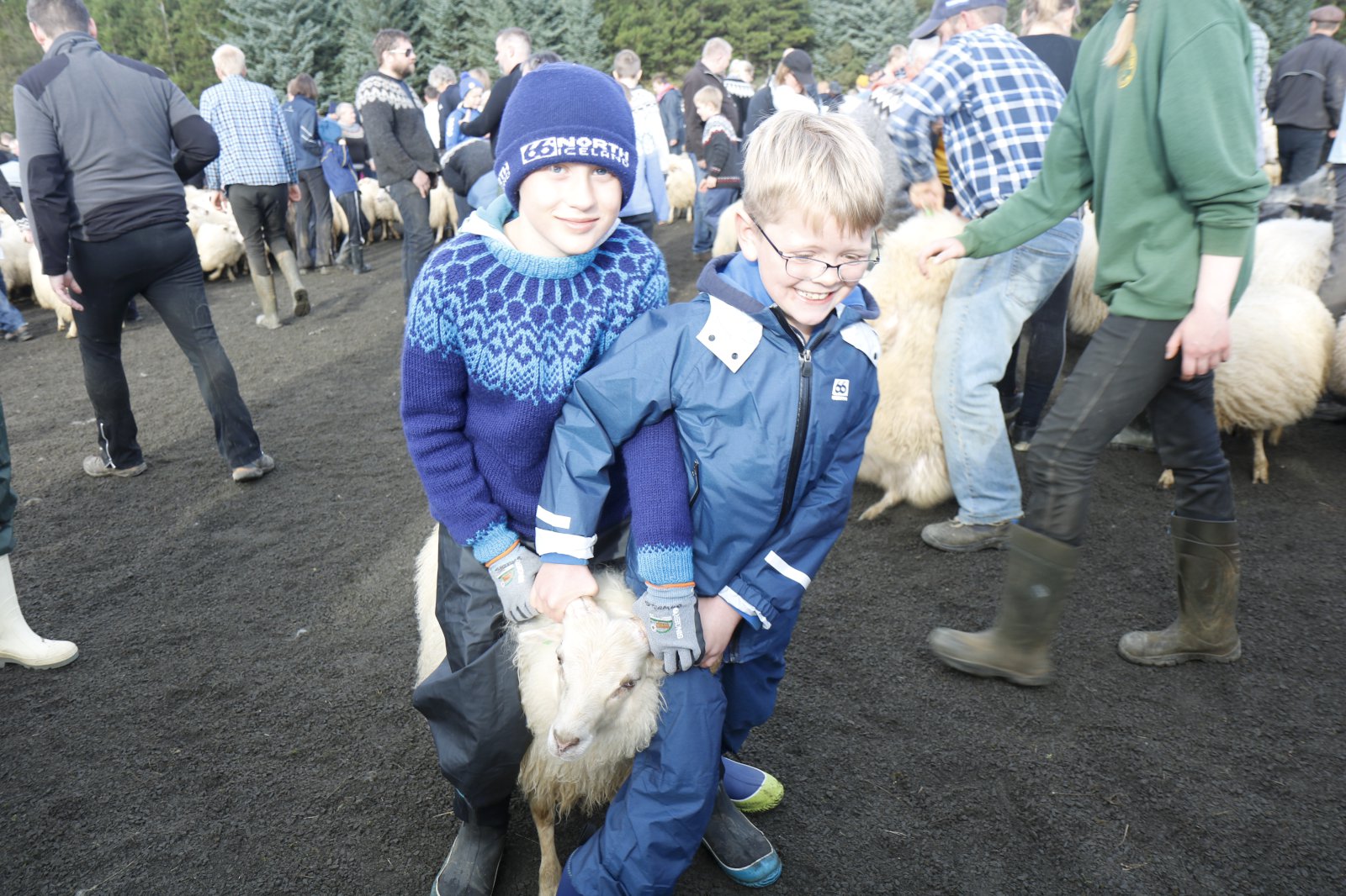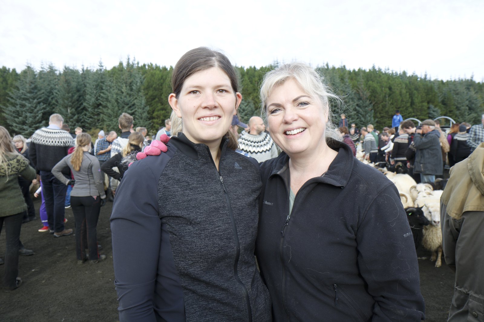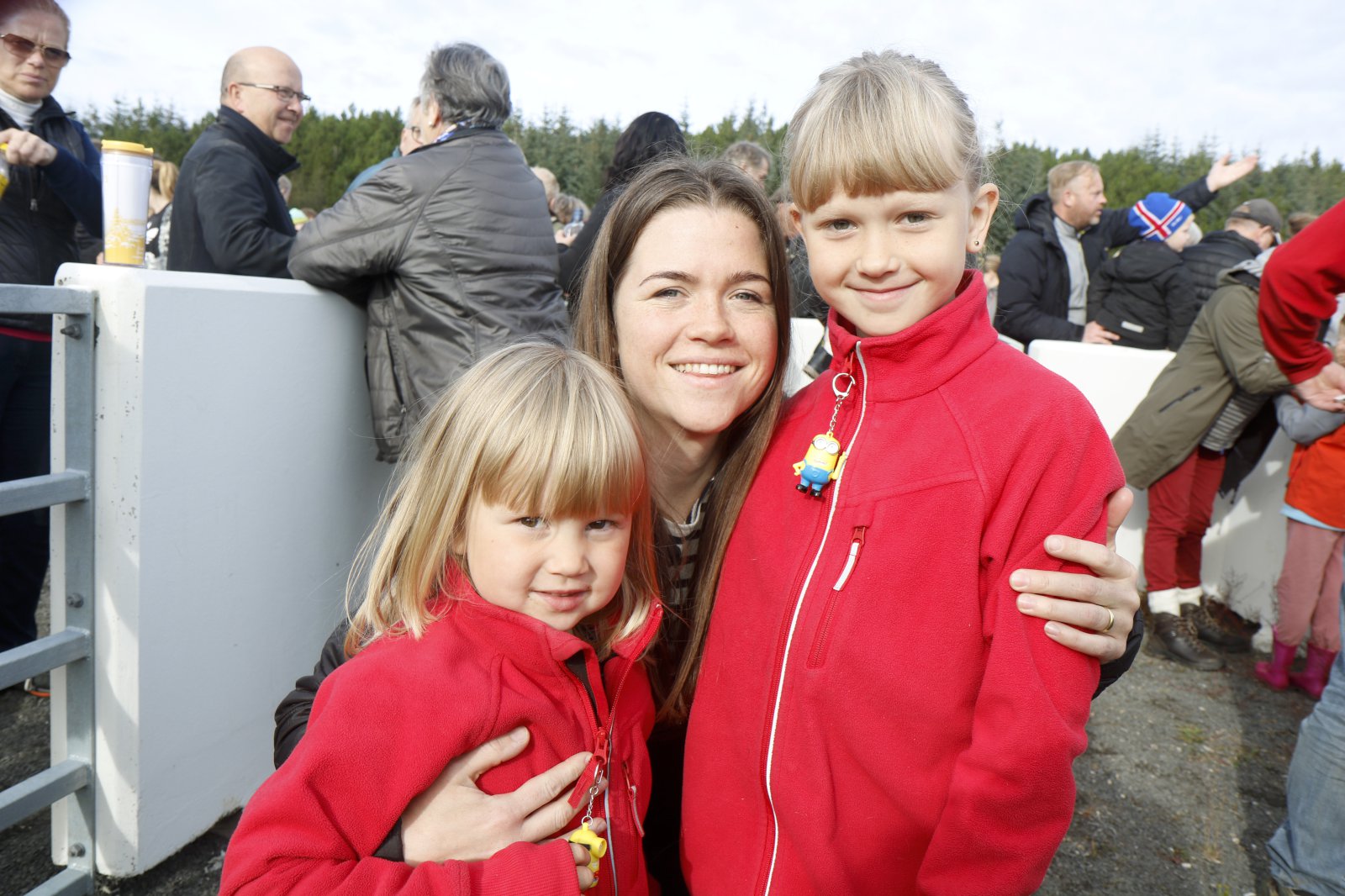 Lukka og Saga mættu með mömmu sinni, Evu Dögg, í réttirnar.