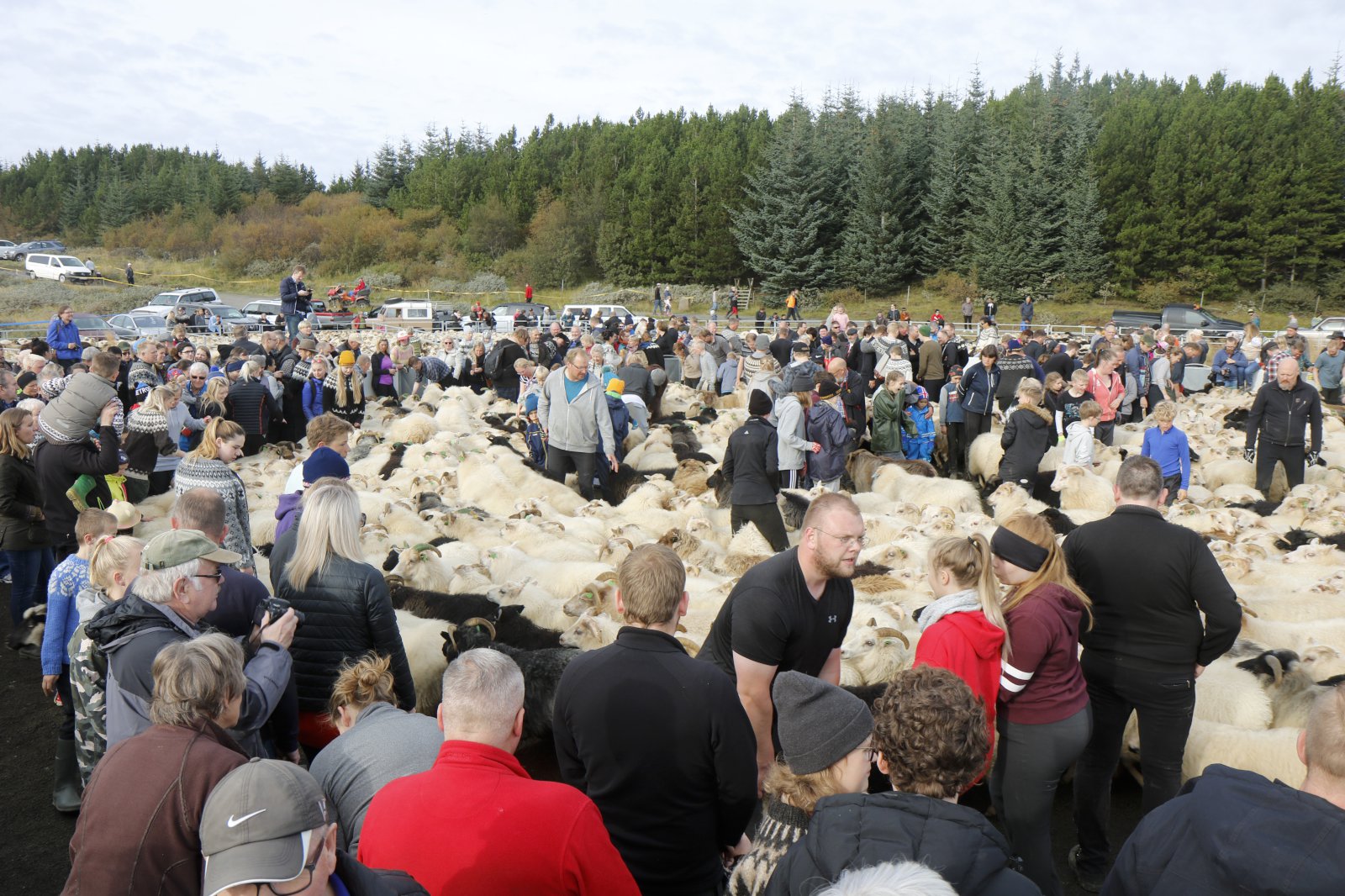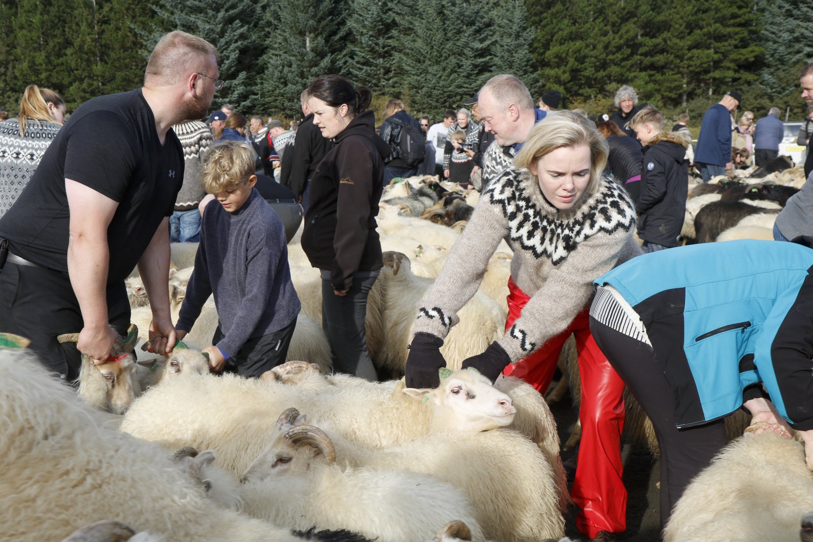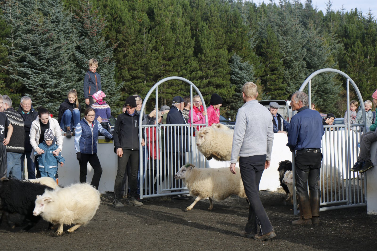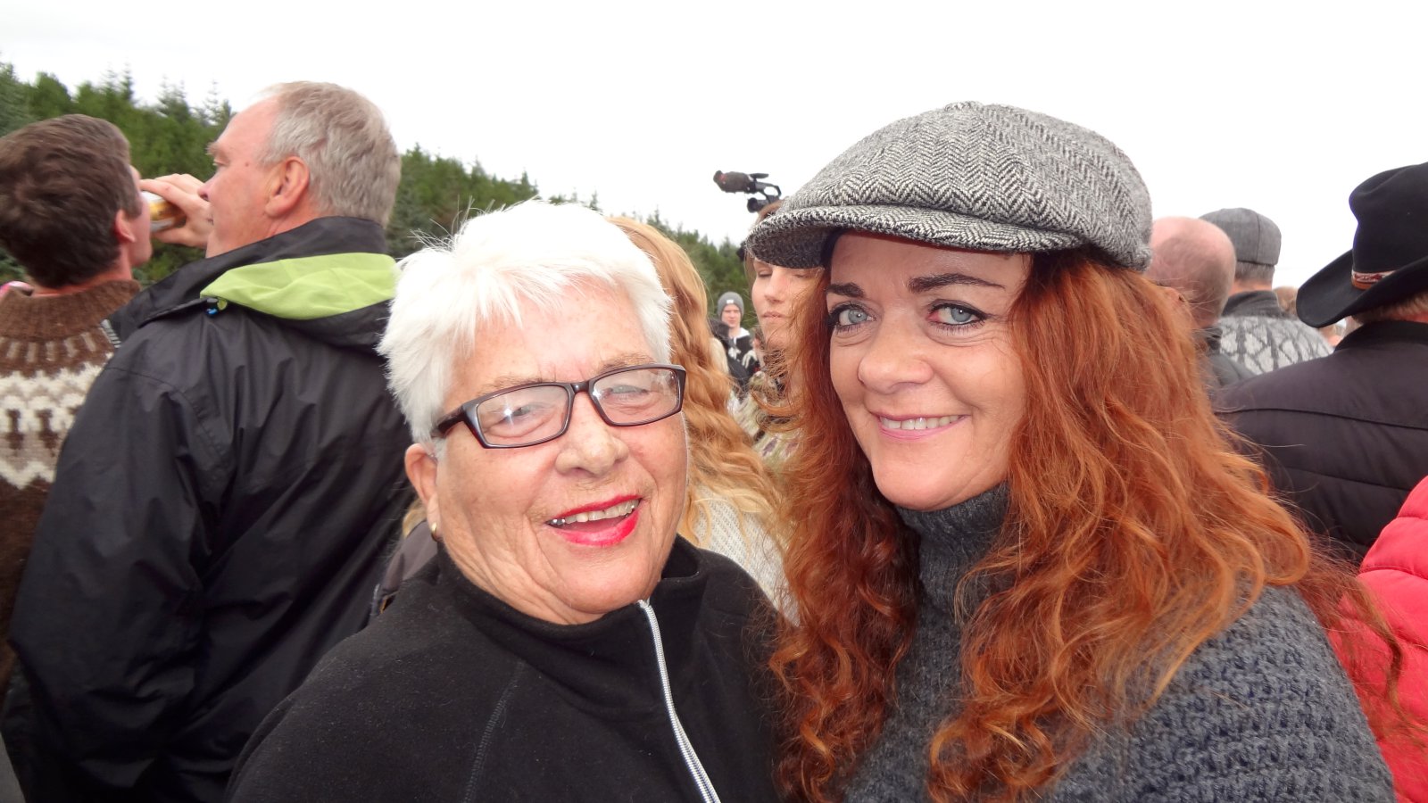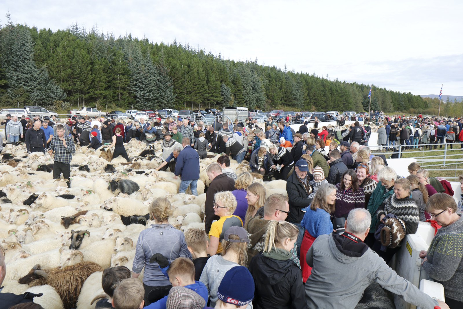 Lukka og Saga mættu með mömmu sinni, Evu Dögg, í réttirnar.