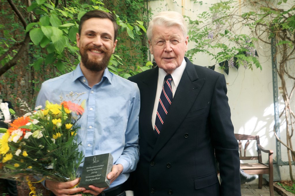Hjörtur Þorbjörnsson, forstöðumaður Grasagarðs Reykjavíkur, tók á móti viðurkenningunni úr hendi forseta Íslands.