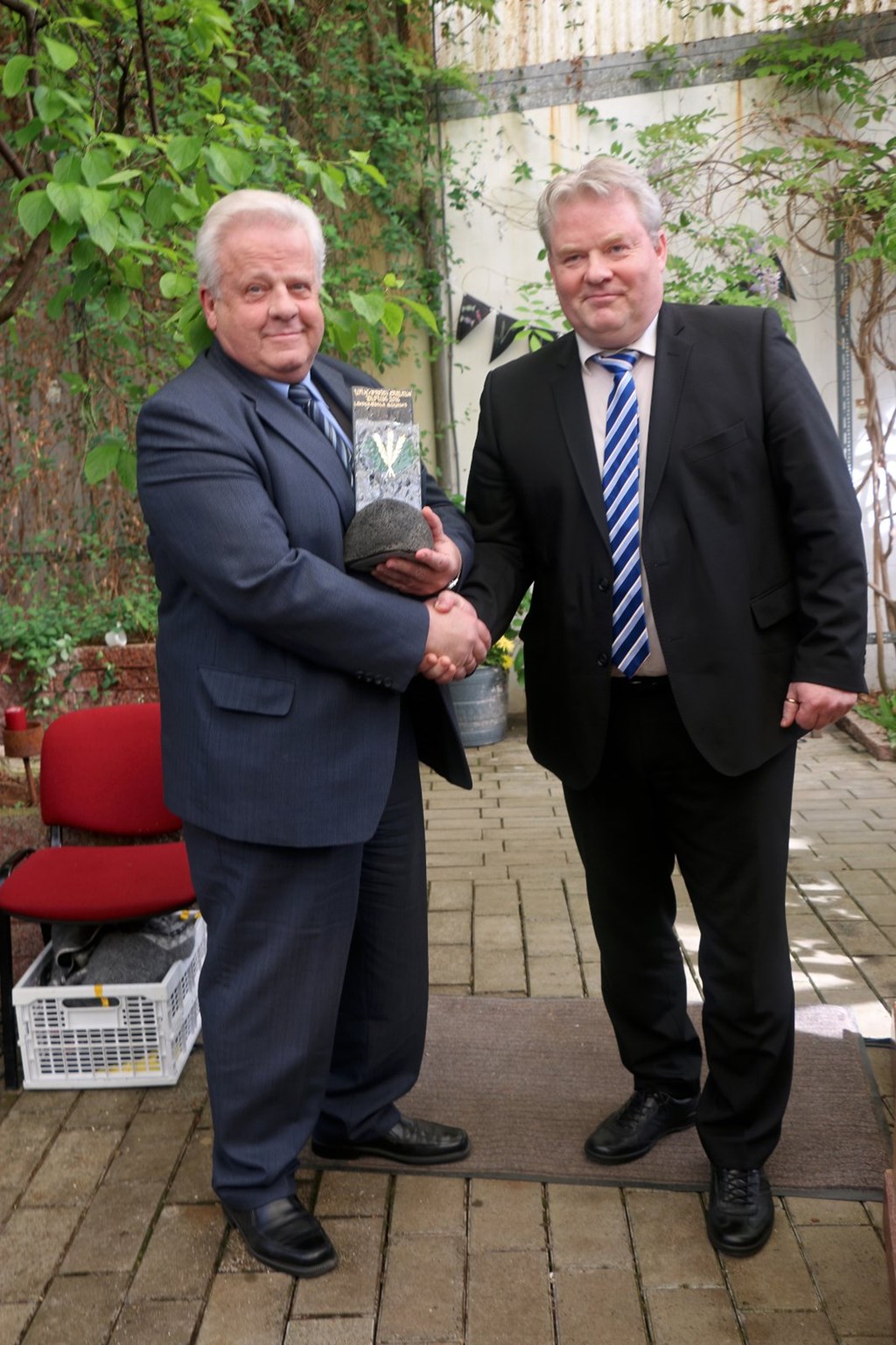 Sigurður Halldórsson, framkvæmdastjóri Fengs, með viðurkenninguna frá Hveragerðisbæ, ásamt forseta Íslands og Friðriki Sigurbjörnssyni, varaformanni umhverfisnefndar.