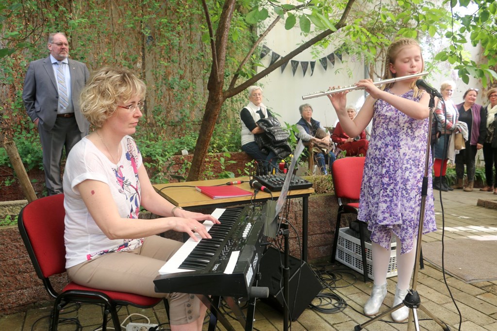 Mæðgurnar Guðríður Helgadóttir, staðarhaldari á Reykjum, og dóttir hennar, Brynhildur Erla Finnbjörnsdóttir, nemandi í Tónlistarskóla Kópavogs, spiluðu nokkur lög við hátíðarathöfnina. Myndir / Magnús Hlynur Hreiðarsson