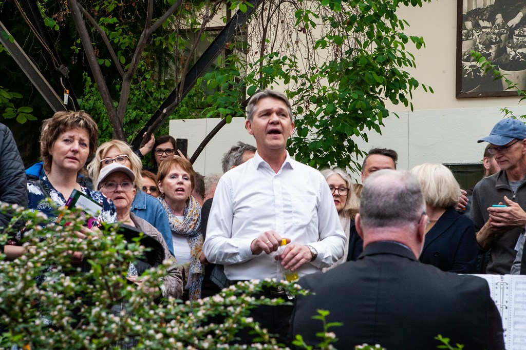 Karlakór Hveragerðis undir stjórn Örlygs Atla Guðmundssonar hóf upp raust sína í skemmtilegum snarskara (e. flash mob) við upphaf hátíðardagskrár.