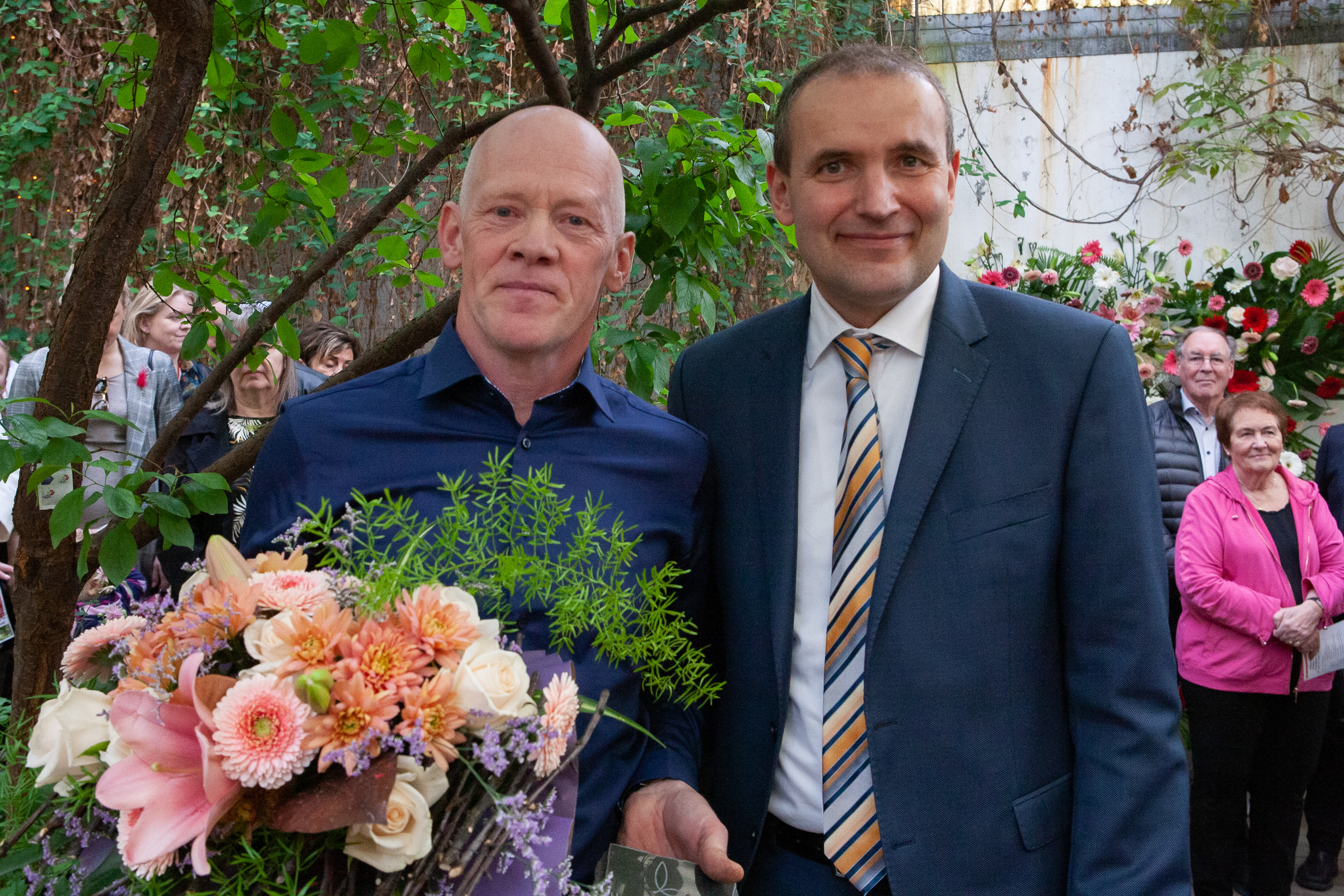Jóhanna Margrét Hilmarsdóttir, verknámskennari í blómaskreytingum hjá Garðheimum, og Guðni Th. Jóhannesson forseti.