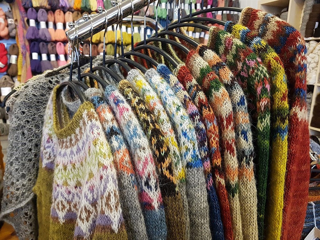 Einbandspeysur í Þingborg, sem hægt er að kaupa í versluninni.