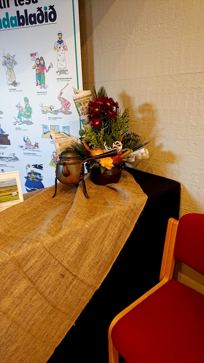 Vinningsborðið: Ólöf Ósk Magnúsdóttir í Hrygg var hugmyndasmiðurinn að þeim skreytingum.