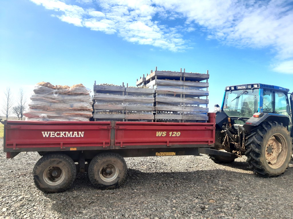 Kartöfluútsæði flutt í garðana. Mynd / Sveinn Rúnar Ragnarsson, Akurnesi