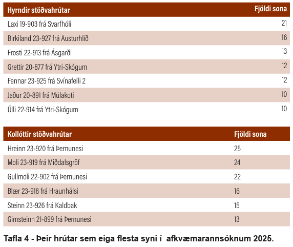 Stöðvahrútar sem áttu flesta syni í afkvæmarannsóknum 2025