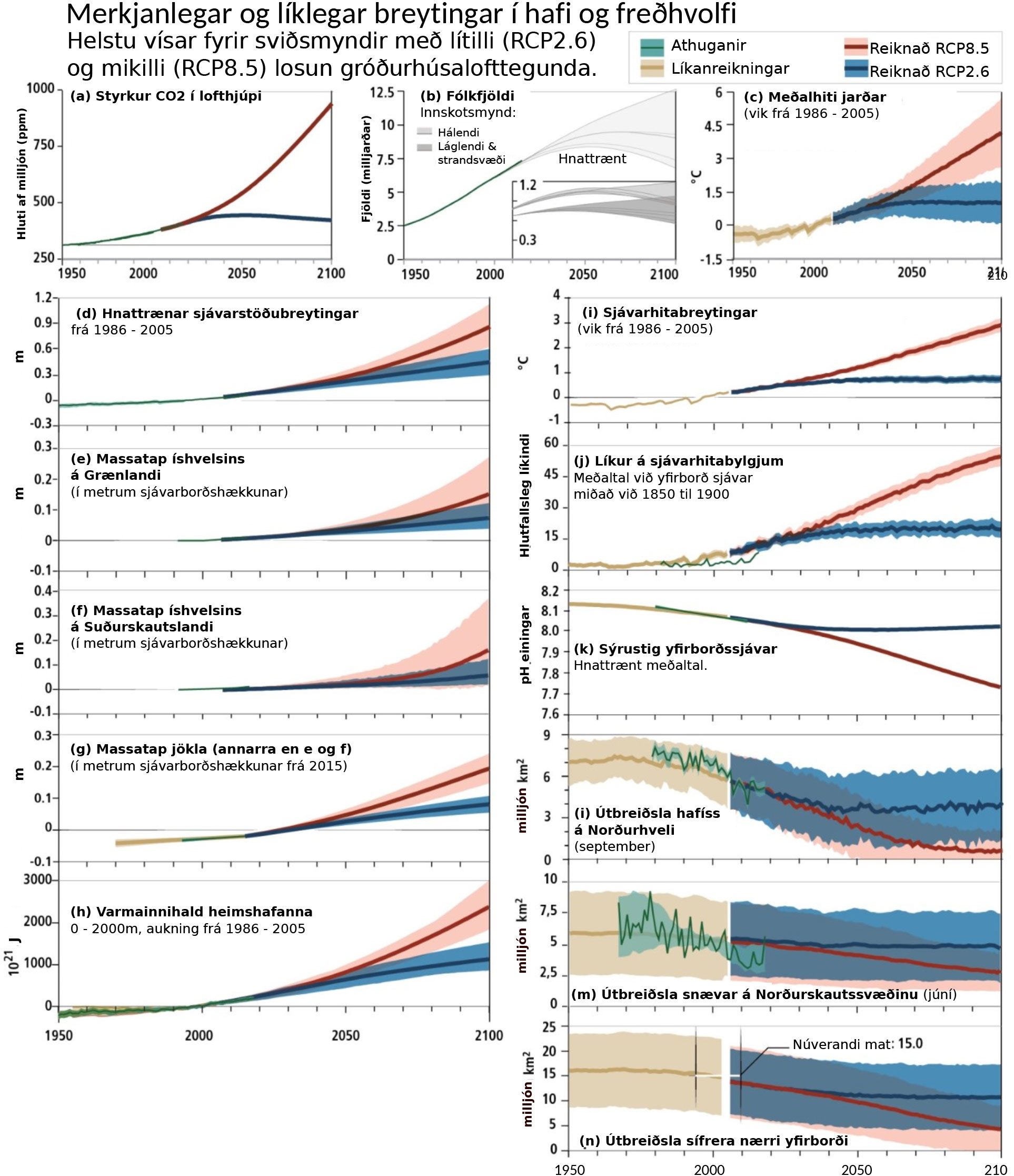 Niðurstöður spálíkana benda til þess að rýrnun íss og snævar muni enn aukast á seinni hluta 21. aldar ef losun gróðurhúslofttegunda verður áfram veruleg. Verði stórlega dregið úr losuninni á komandi áratugum er líklegt að hægja taki á rýrnun sífrera og snjóhulu, en leysing og hörfun jökla mun halda áfram.
